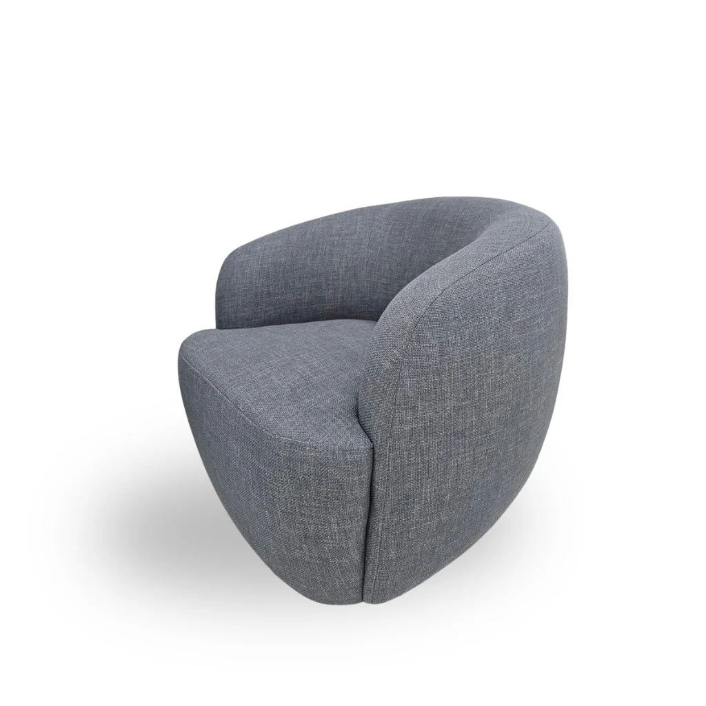 Description: Modern barrel-style armchair features a rounded backrest and smooth, curved lines for a sleek, contemporary look.