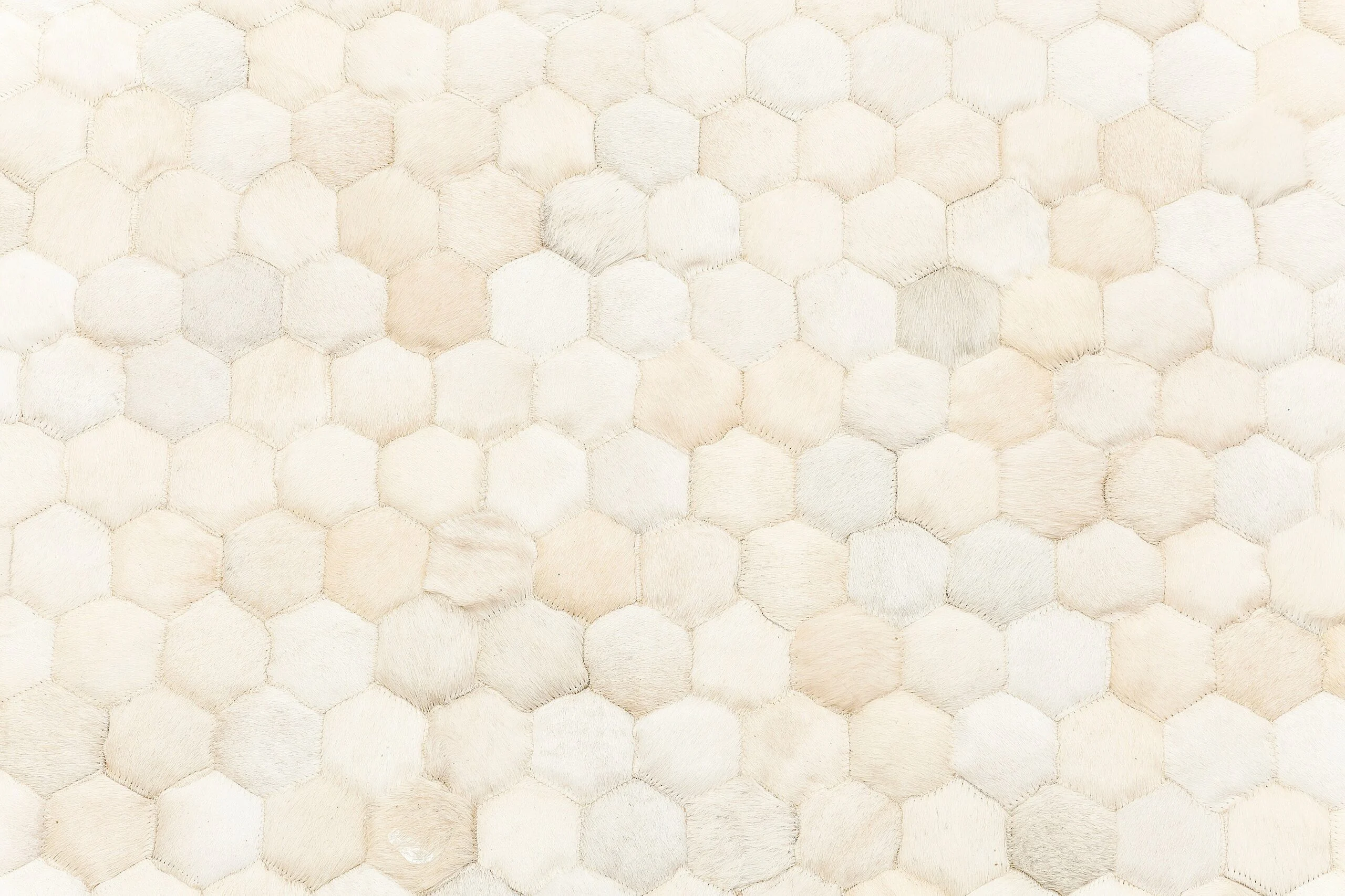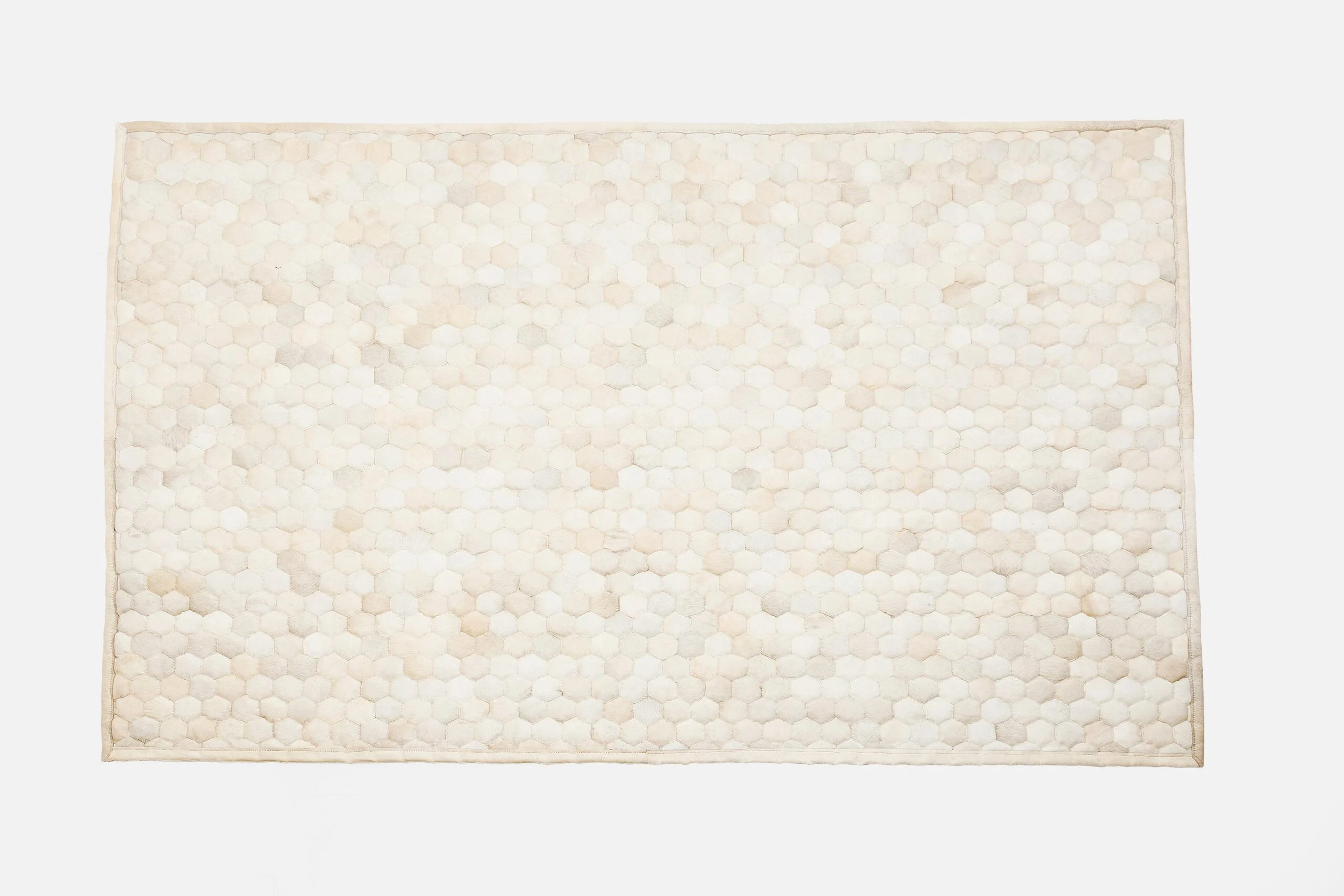 This stylish cream carpet features a honeycomb pattern made from natural hide, creating a unique, 3D effect. It pairs beautifully with wood and leather, enhancing any space with its one-of-a-kind design and premium materials.