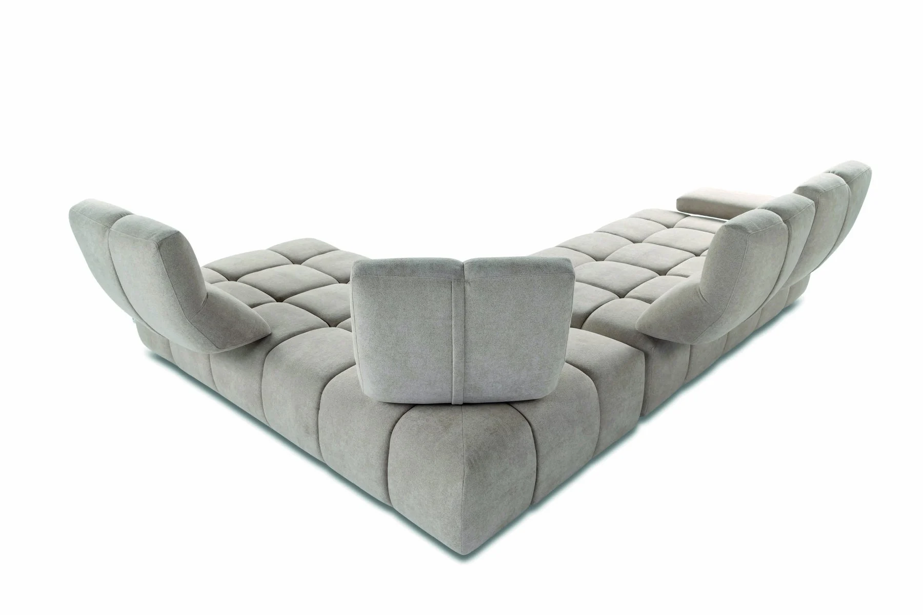 A further mechanism inside the backrest allows the headrest to be adjusted. The generous thicknesses of the seat cushions, emphasized by the elegant quilted workmanship, convey a remarkable feeling of comfort and give it a strong, contemporary character.