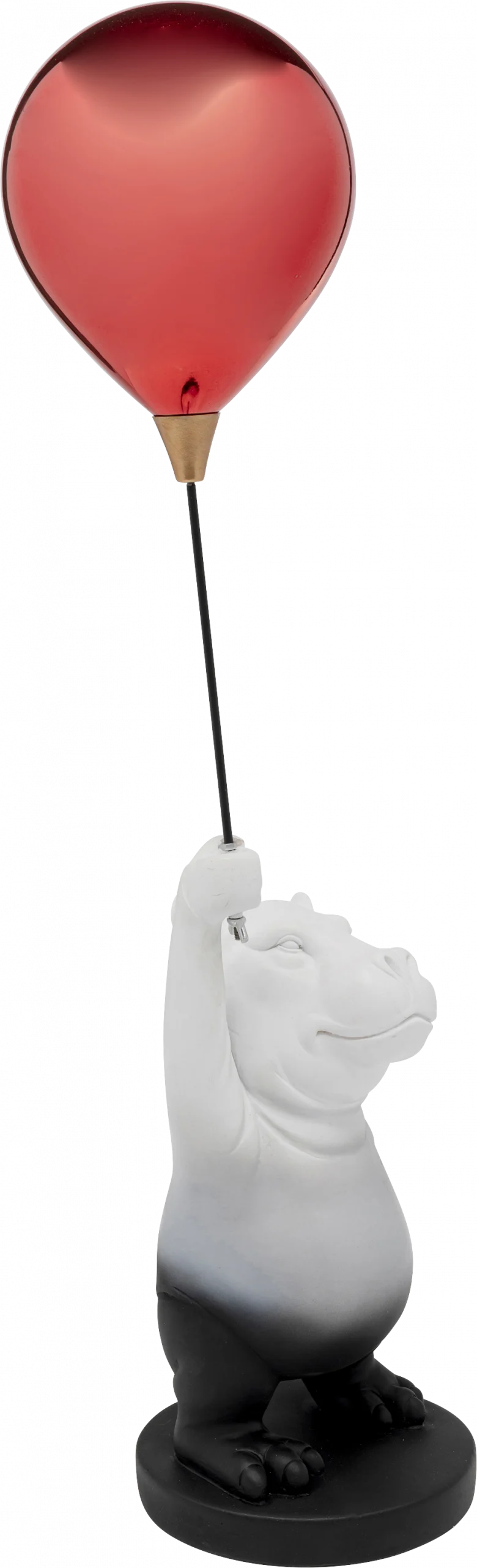 Description: A playful highlight for any home – this cute hippo figurine brings joy to the room with a bright red balloon. The simple combination of black and white is perfectly complemented by the intense color of the balloon. Whether on sideboards, chests of drawers or side tables, this charming work of art sets cheerful accents and gives both modern and classic interiors a unique, lively look. A must-have for all those who want to combine fun and style.
