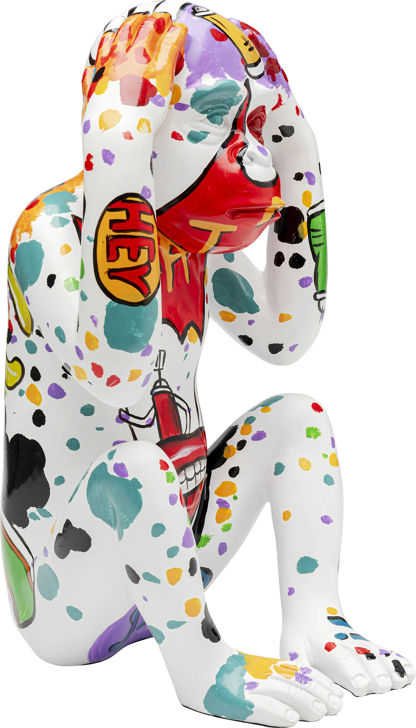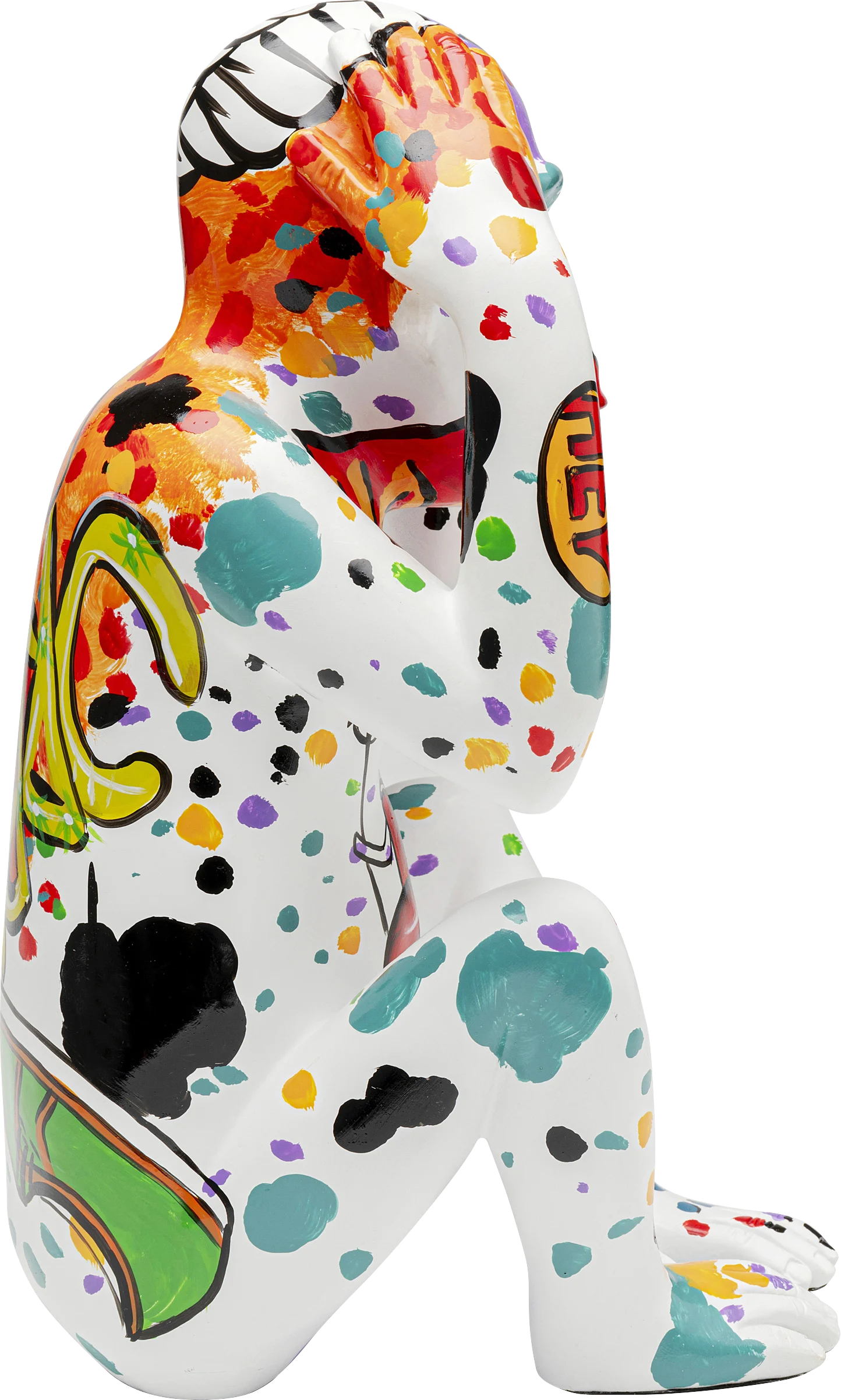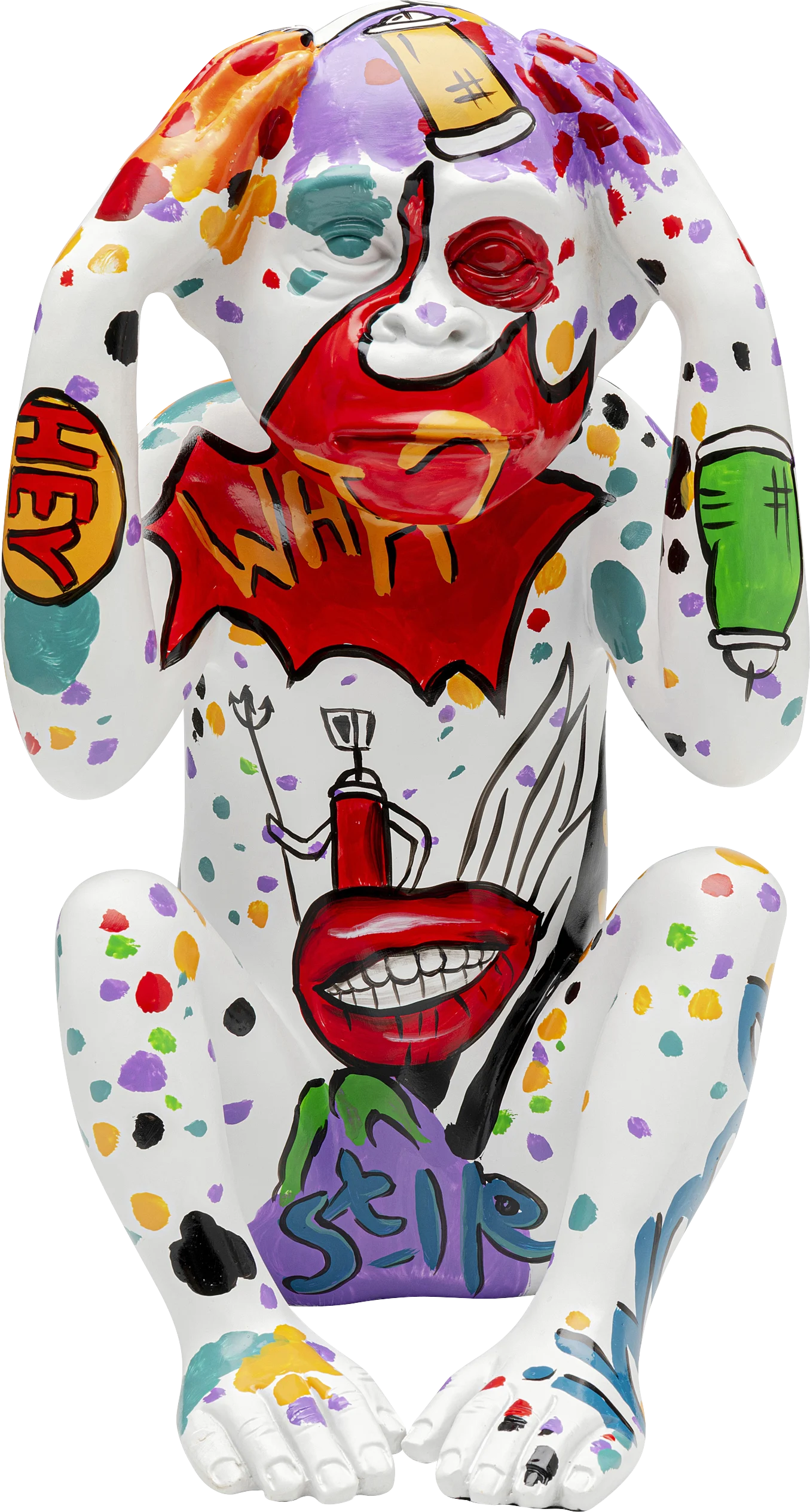 Description: This playful decorative monkey adds a lively and humorous accent to any room. With its urban graffiti look and cheeky design, it brings a touch of street art into the home. The dynamic pose and vividly designed details make it a unique eye-catcher. Ideal for modern interiors or as a contrast in classic rooms – this figurine can be perfectly combined with minimalist pieces of furniture or colorful accessories. It creates creative accents on shelves, sideboards or as a highlight in a display cabinet and lends the room an informal, artistic atmosphere.
