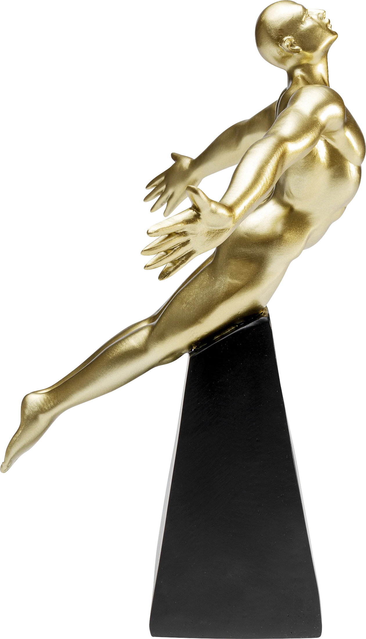 Description: This imposing decorative figurine makes a strong statement with its golden surface. The dynamic, masculine silhouette radiates power and elegance, while the black base provides a modern contrast. Perfect as an eye-catcher on sideboards, in entrance areas or as a stylish addition to sport-inspired rooms. Whether in the home office, gym or as a striking art object – this sculpture lends an expressive presence to any setting.