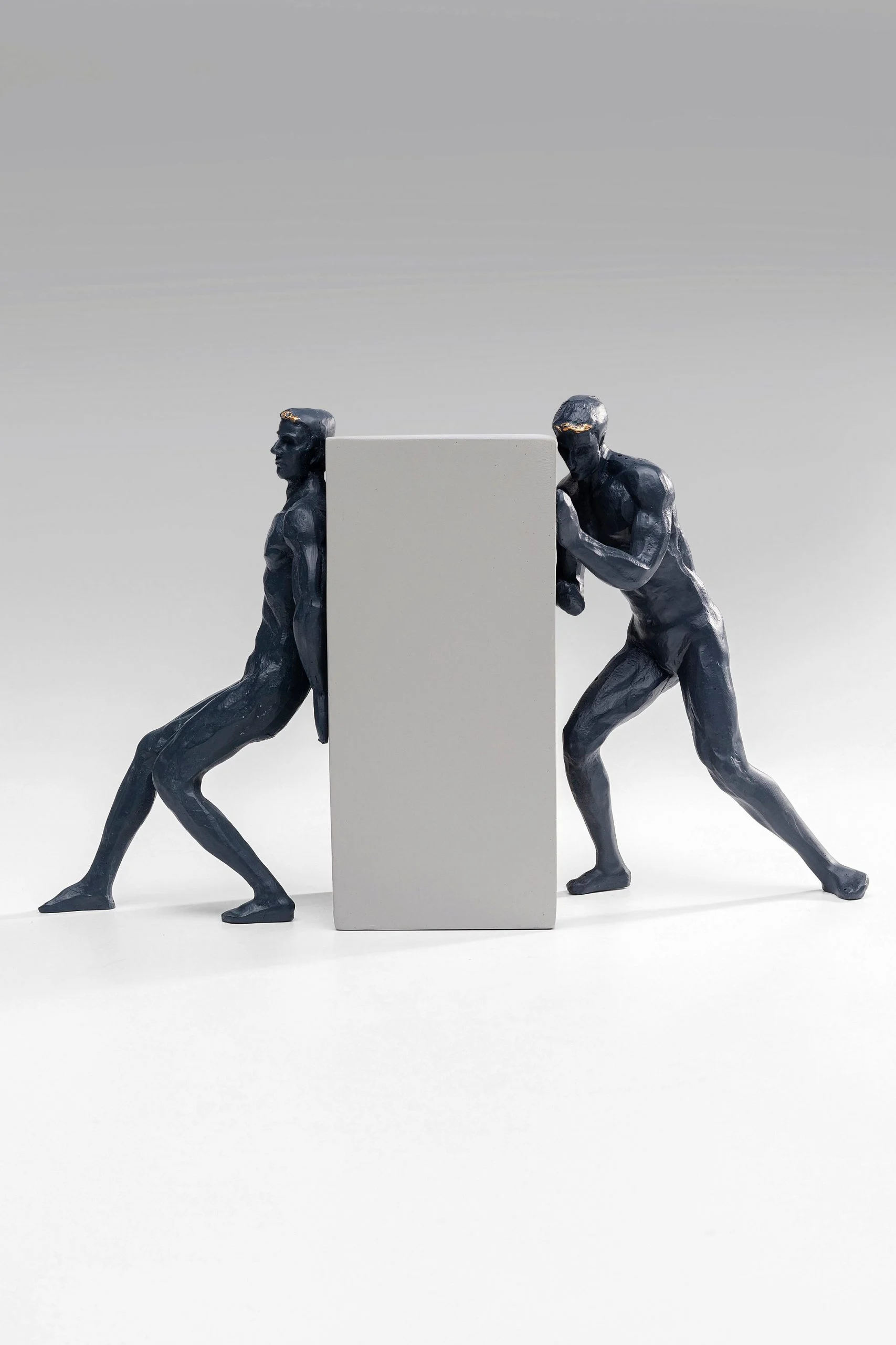 Description: The “Deco Object Oppose” by KARE is a decorative sculpture featuring two strong, muscular figures in a dynamic pose, facing each other and seemingly pushing a block. It’s made of polyresin and hand-crafted, making each piece unique.