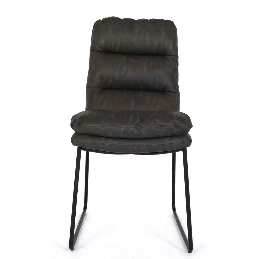 Description:A modern dining chair with metal legs and a puffy back and seat.
