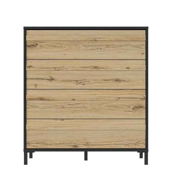 Description: Frame and fronts made from particleboard covered with Helvezia oak effect and plain black foil. Edges with the same finish, some in ABS.
