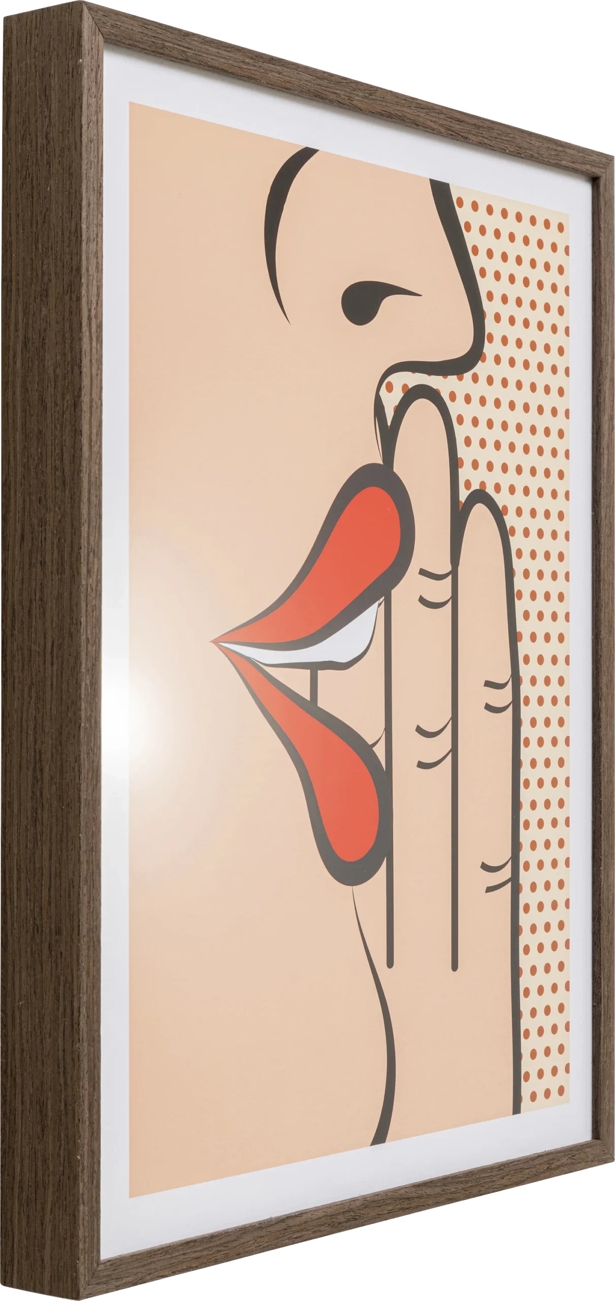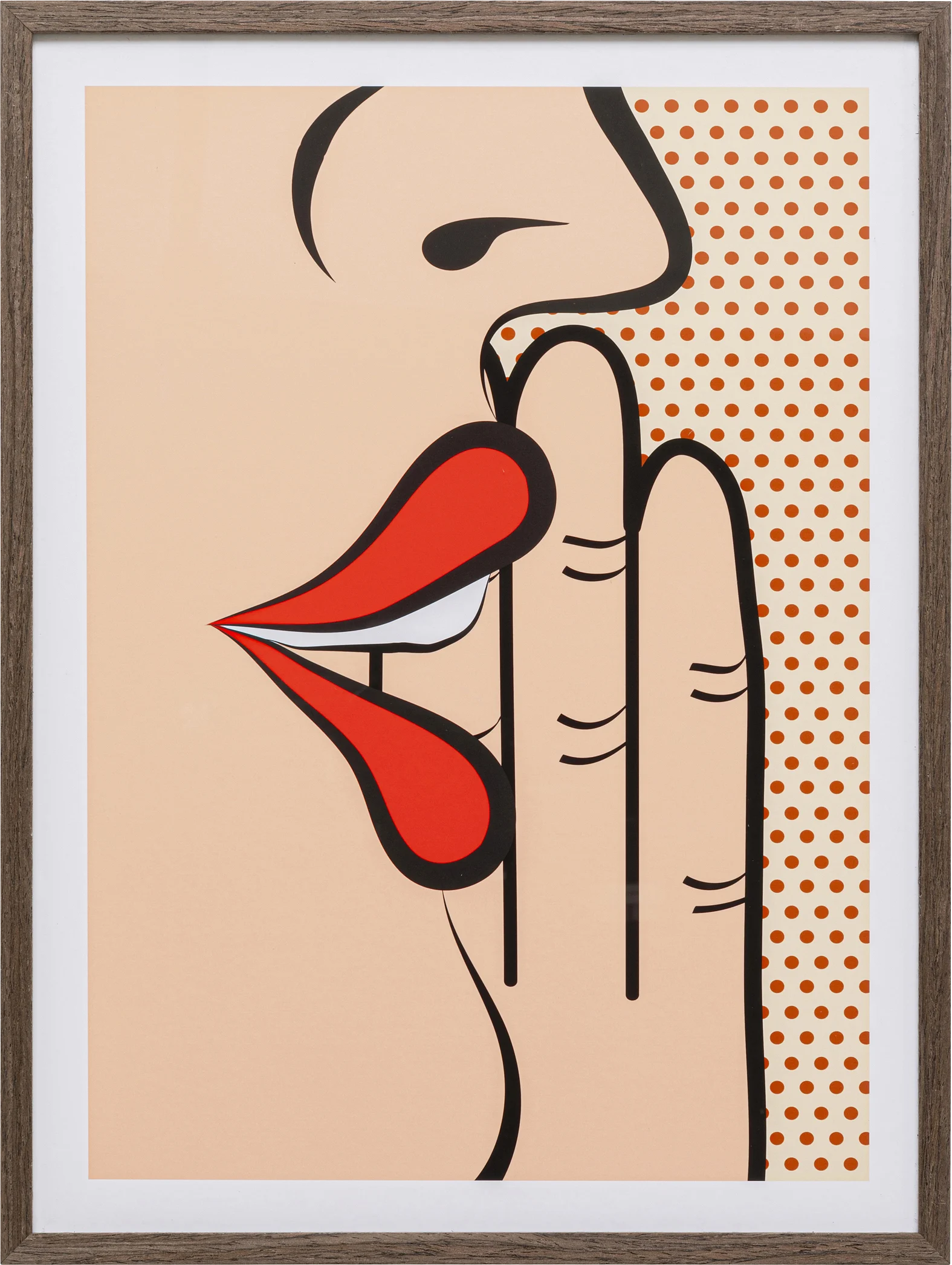Description: Express your originality and love for pop art with the Comic Whisper painting. This framed piece impresses with its minimalist yet distinctive graphic style and can liven up the atmosphere of any room. Whether you hang it in your living room, office or modern apartment, it will become an unmissable element of your interior.