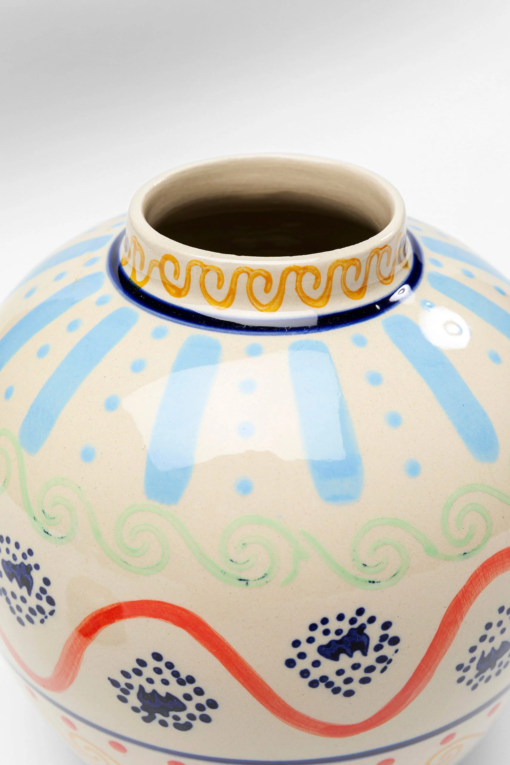 Description: Colorful, patterned stoneware dinnerware embodies a fascinating decorative character. Discover our high quality Los Cabos series of plates, bowls, matching vases and jars. The vibrant patterns and colors tell stories of culture and craftsmanship, as all pieces in this series are handmade and hand-painted. On a beige background, bowls and plates feature patterns in blue, red and black. The stoneware material brings a slightly rustic and natural flair to your home. With stoneware tableware you can create original and inviting table decorations, which can be integrated into modern living as well as into a country house ambience. Due to its handmade nature, Los Cabos is not suitable for the microwave or dishwasher. This tin is not suitable for liquids.