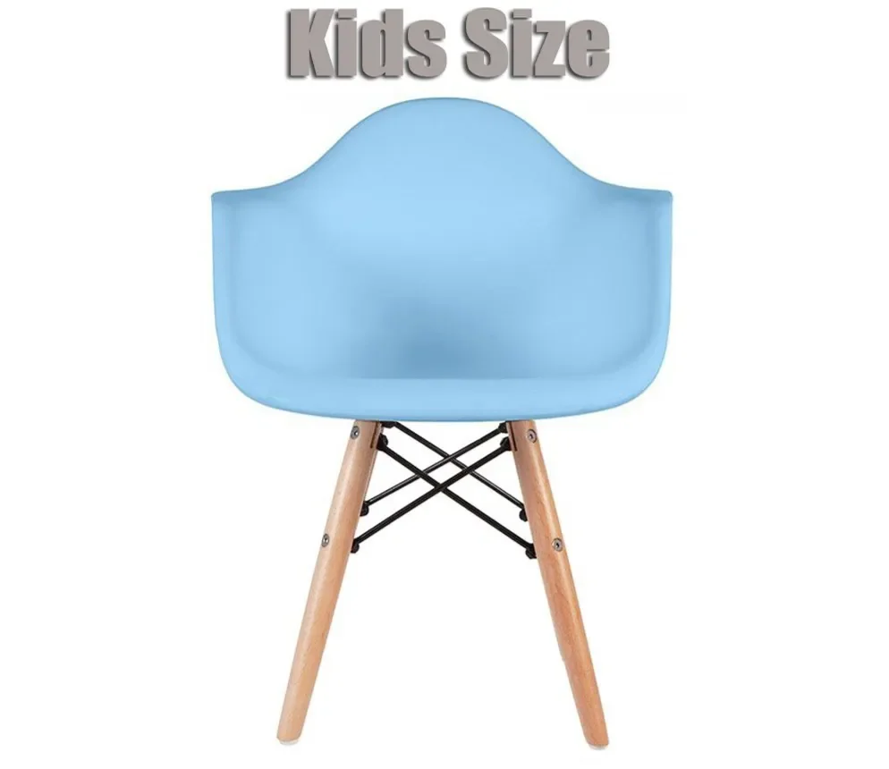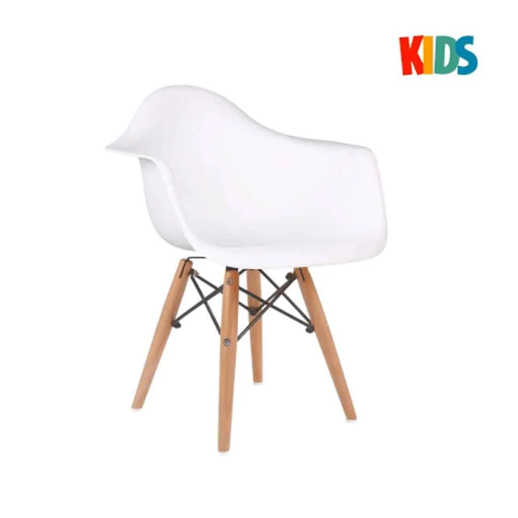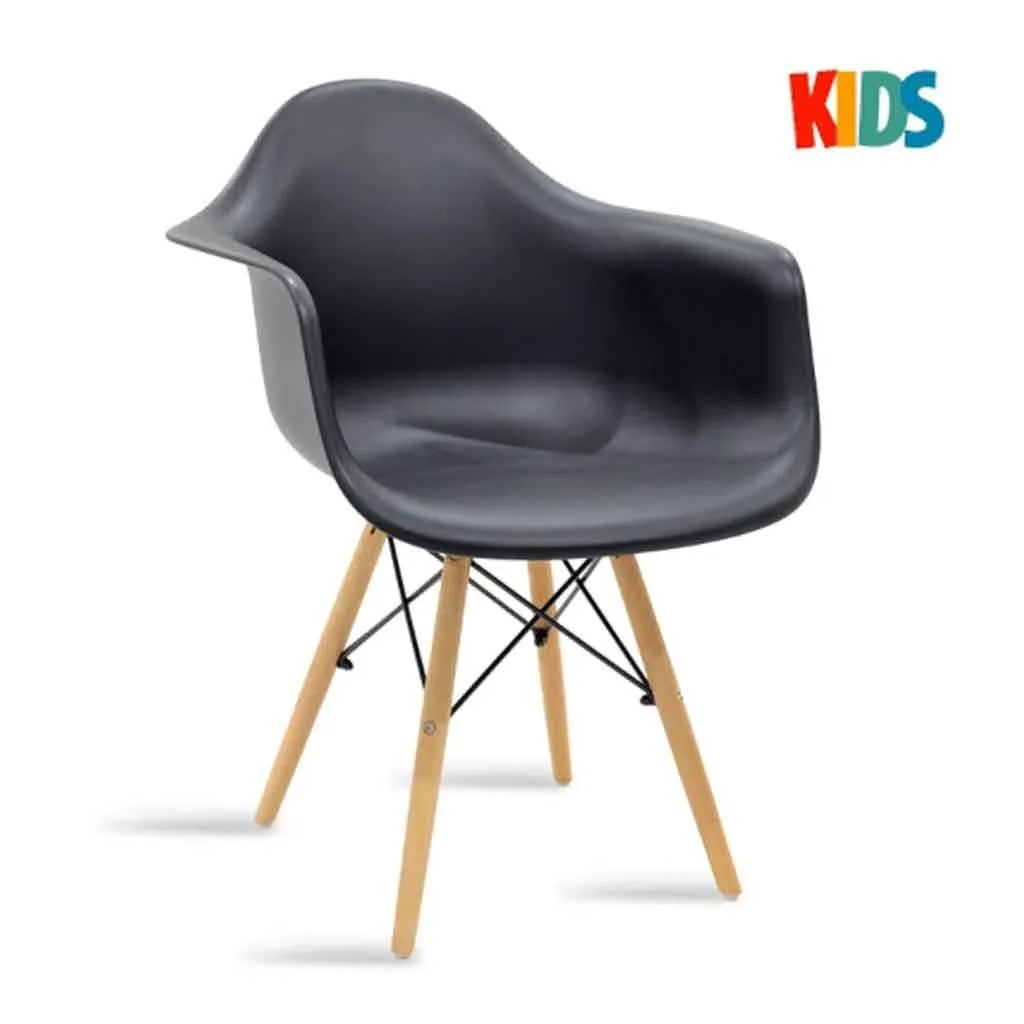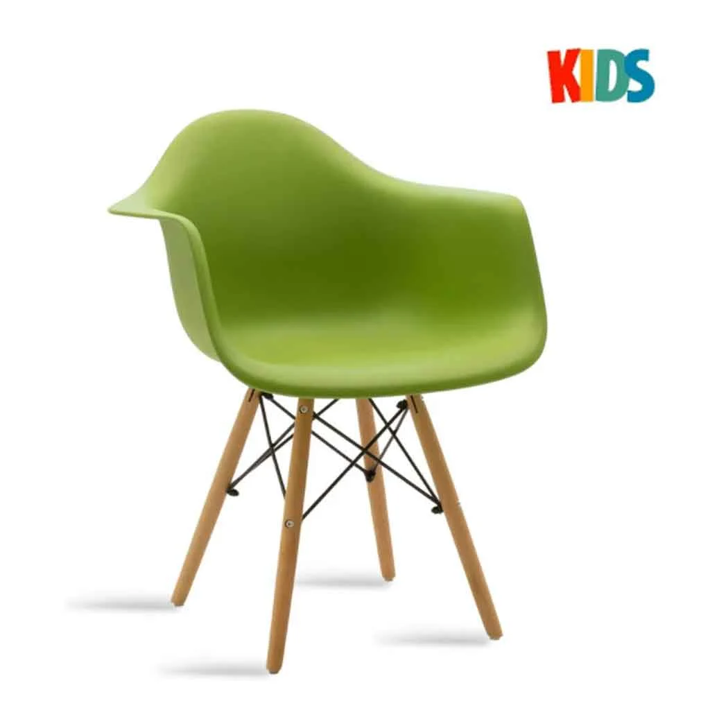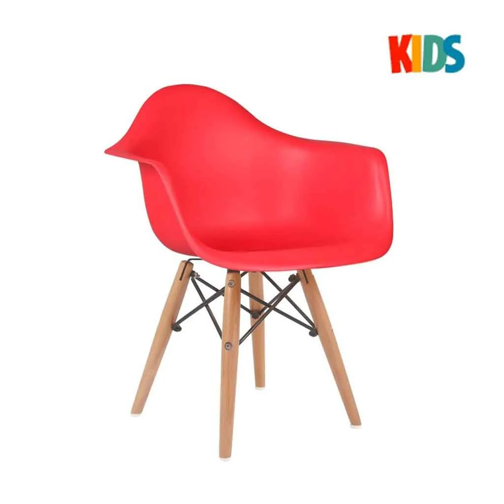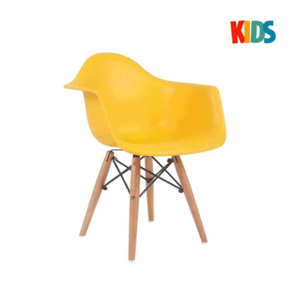 Description: Kids armchair made of resin seat and solid wood legs. Available in 3 different colors.
