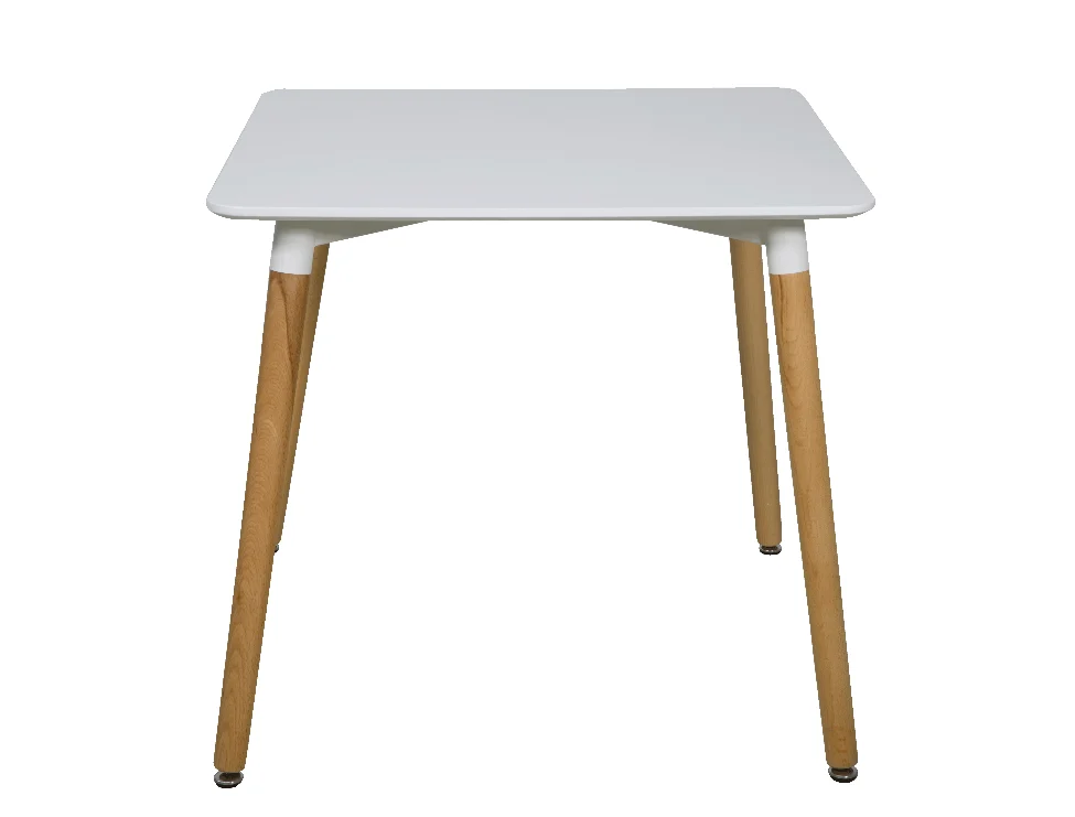 Description:A squared kitchen table made of painted MDF top and natural wooden legs.