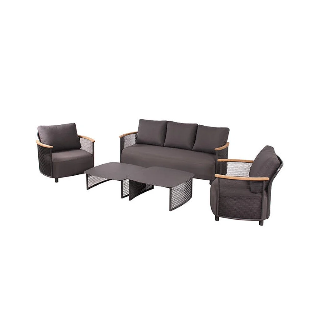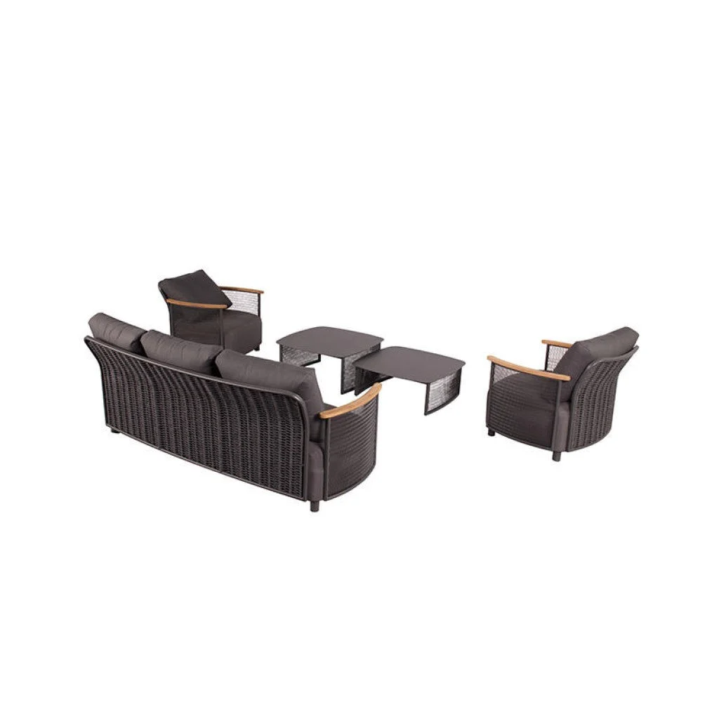 Description: This 5-piece set includes a spacious 3-seater sofa, two cozy armchairs, and two modern coffee tables.