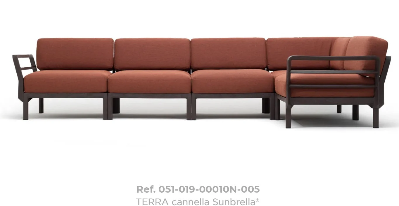 Description: MAXIMO is a modular sofa with a regenerated resin frame and fabrics containing much recycled material that, starting with the single module, allows you to create countless configurations