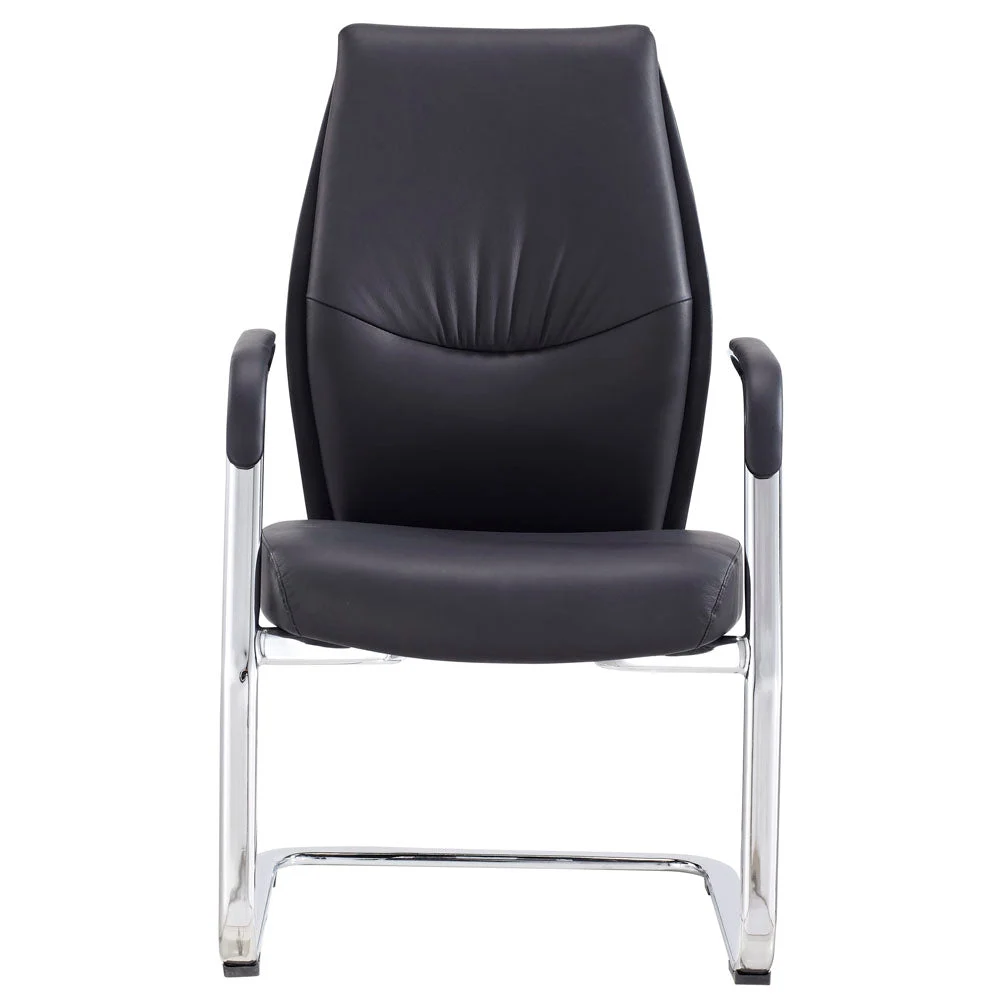 Description: Fixed office armchair made of leather with polished aluminum frame.