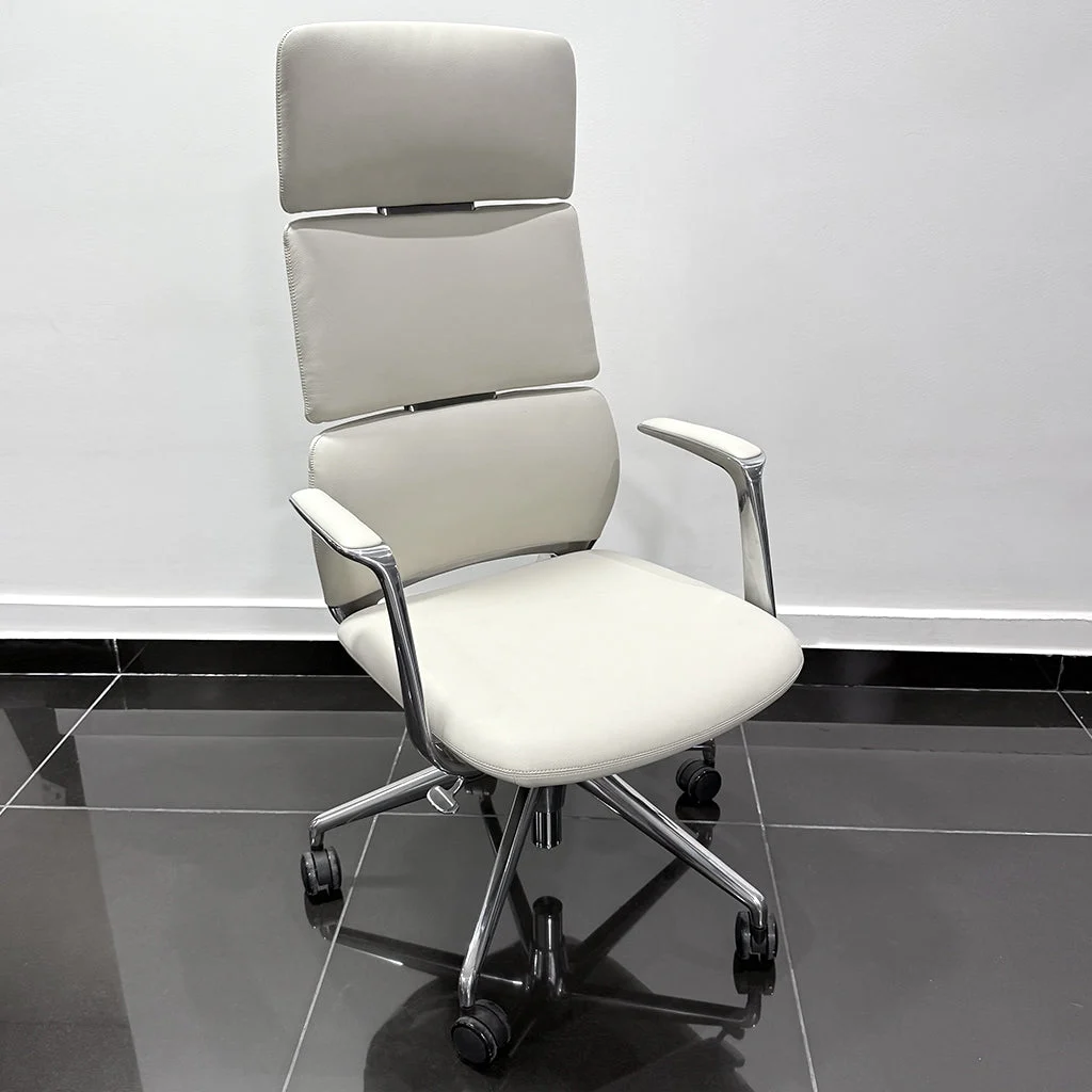 Description:Sleek high-back office chair with segmented padding, chrome armrests and smooth rolling wheels. Combines modern style with all-day comfort.