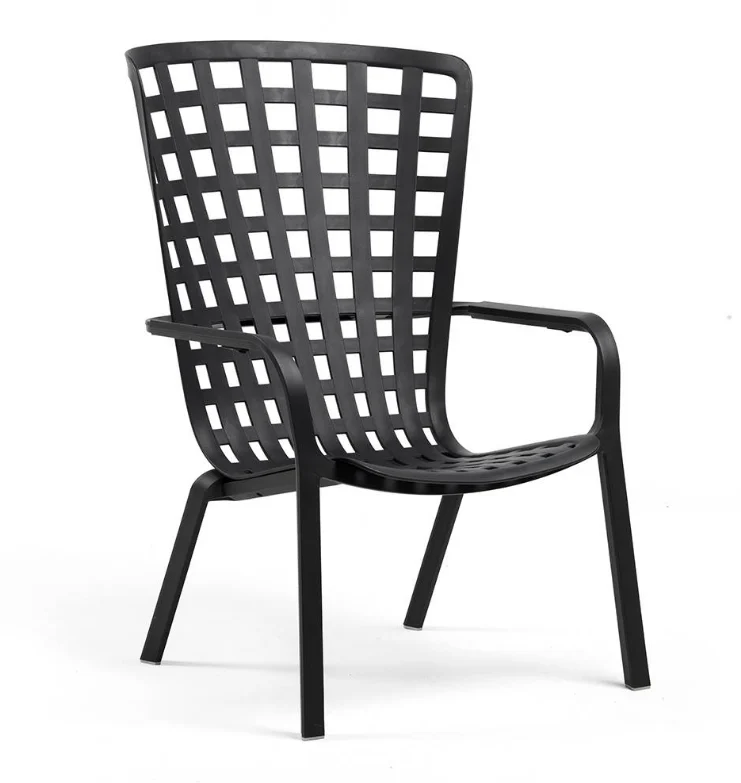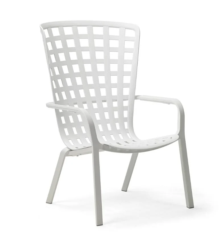 Description: Folio is a relaxation armchair for outdoor use made of fiberglass resin, with a perforated square pattern and a matt finish. With an enveloping back seamlessly connected to the generously lowered seat, the armchair is like a single, refined structural embrace, Reclining to two comfortable positions.