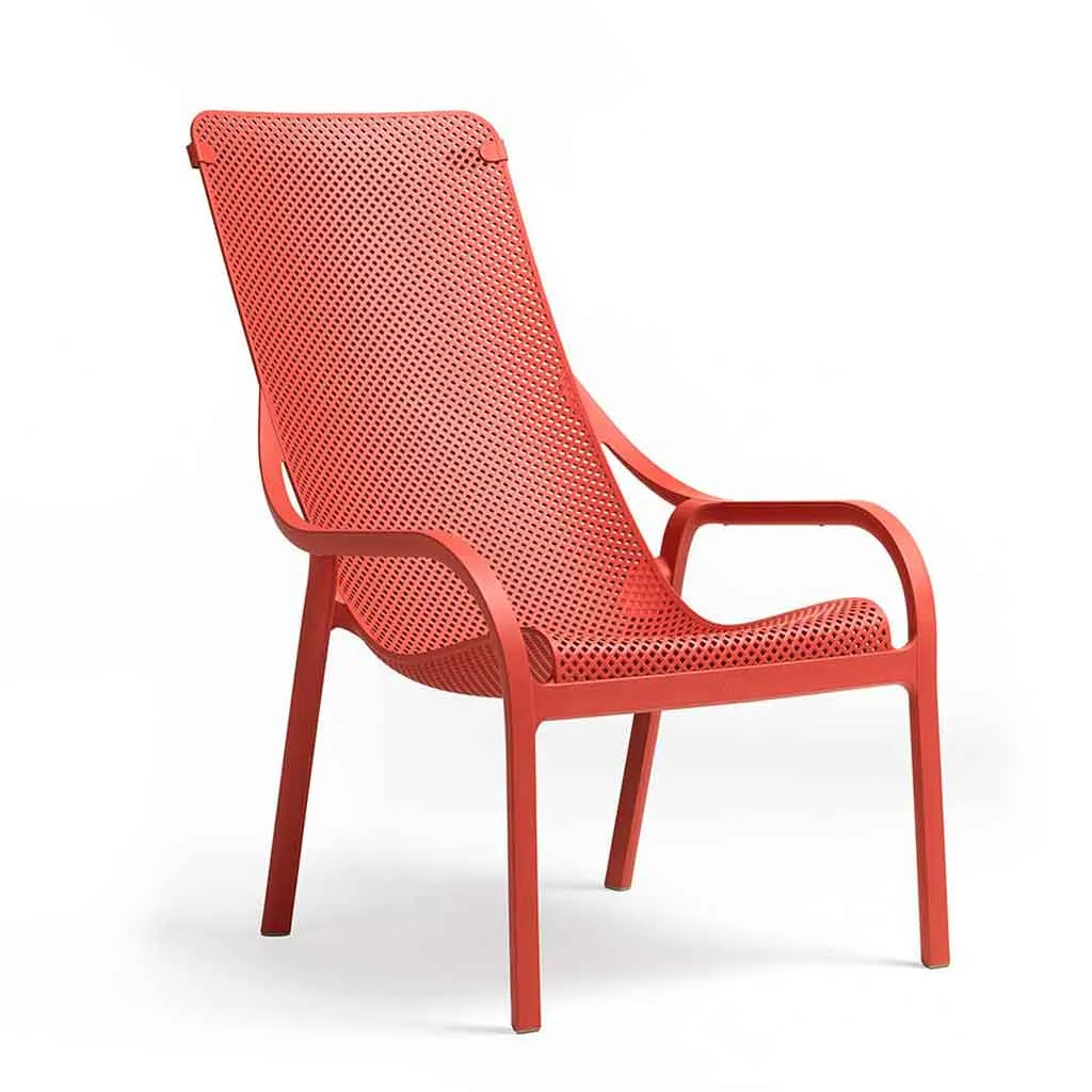 Description: Net Lounge conveys a sensation of well-being just by looking at it. Net Lounge, the outdoor armchair in recyclable polypropylene fiberglass, with a generous deep seat, enveloping shape, and wave-like profile.