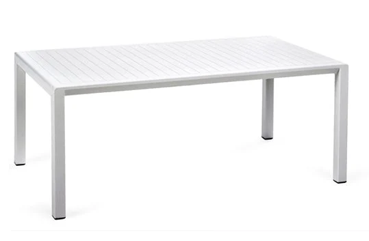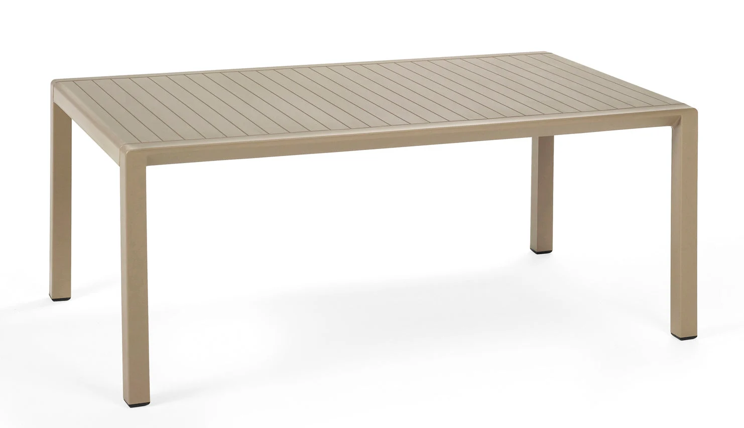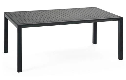 Description :Low resin table with fully enclosed square and rectangular slatted box top, with a lacquered wood effect. Available in a range of colors.