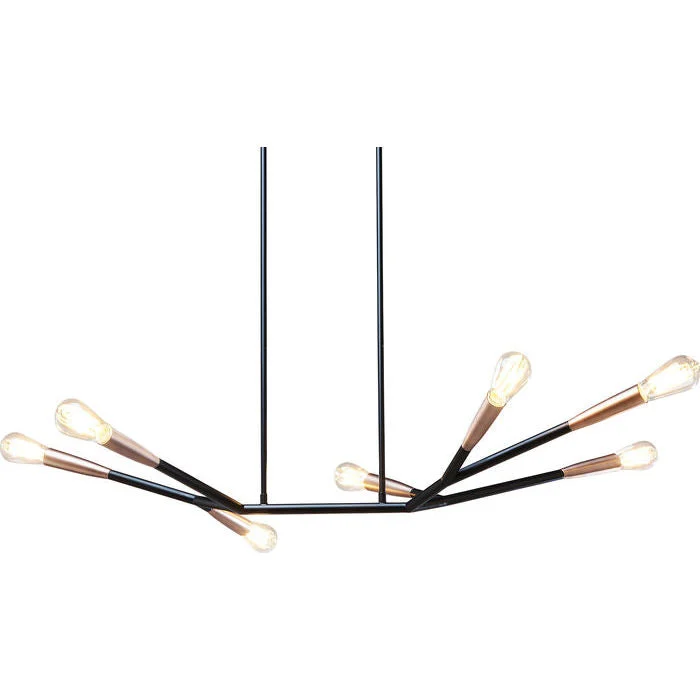 Description: This pendant lamp, made of steel and shiny black base , directs its seven light sources into all corners.