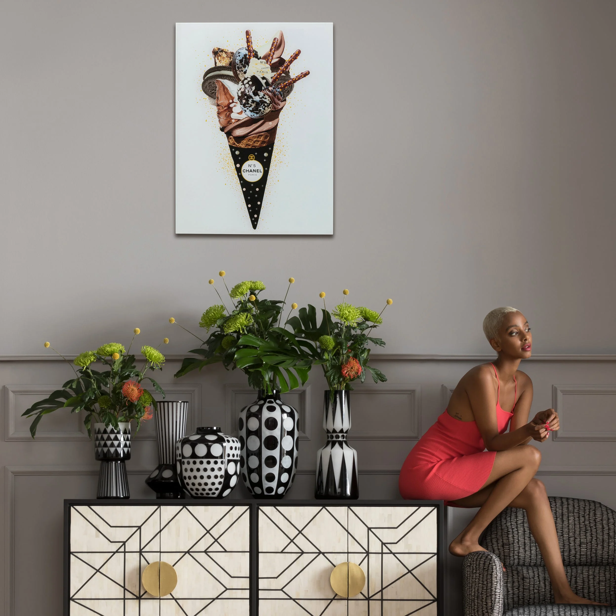 Description: The “Rich Ice Cream 60x80cm Glass Picture” by Kare Design is a piece of home decor featuring an image of ice cream, mounted on a tempered glass front, suitable for vertical wall mounting