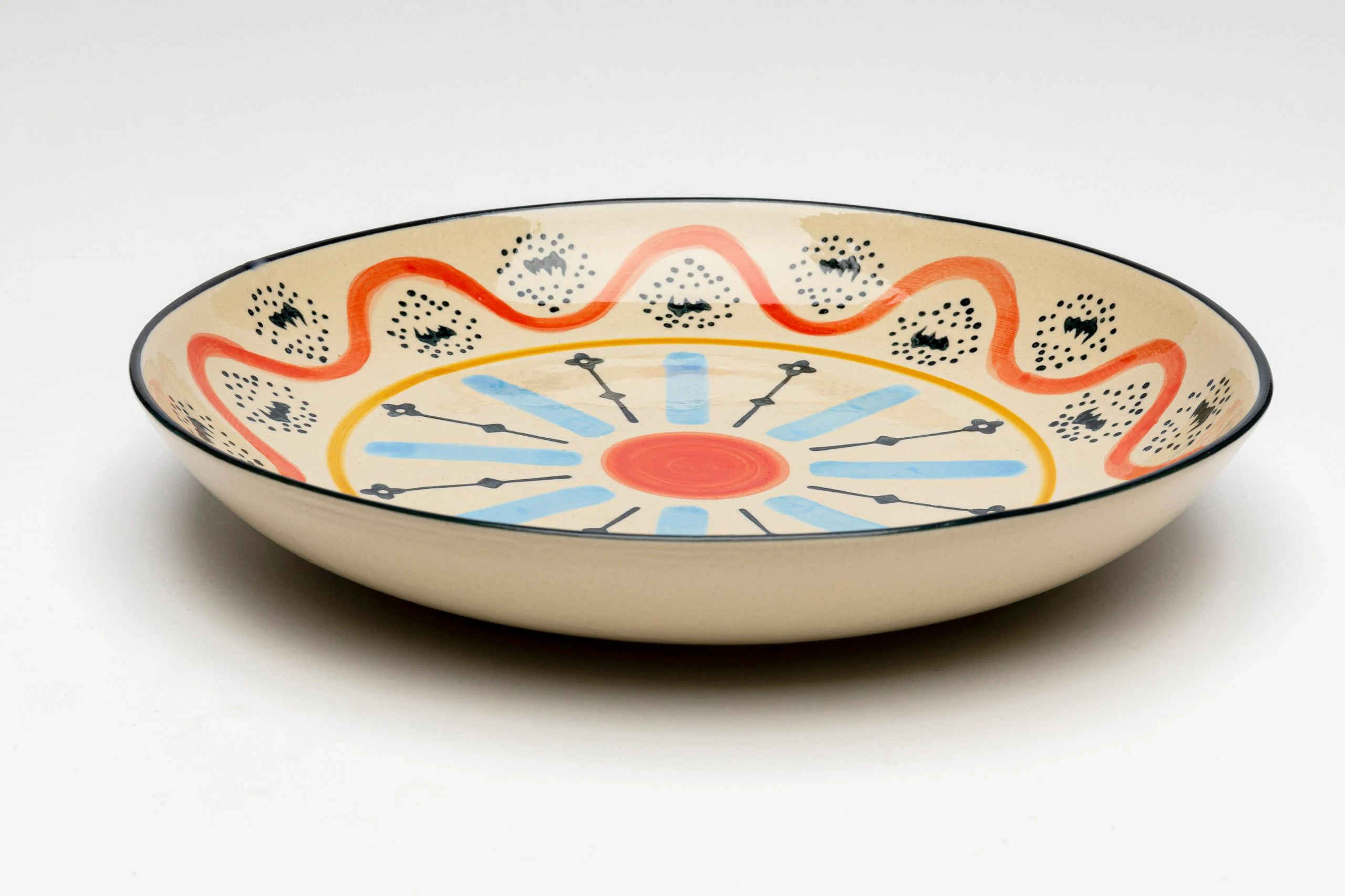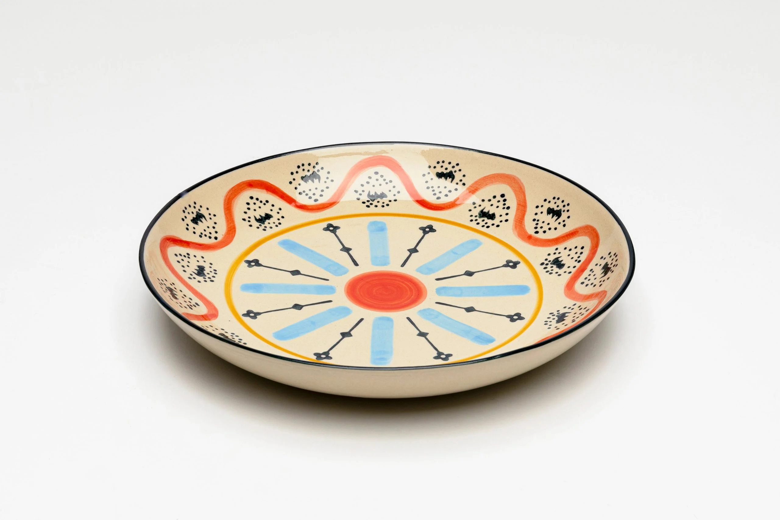 Description: Colorful patterned stoneware tableware exudes a fascinating decorative character. Thevibrant patterns and colors tell stories of culture and craftsmanship, as all pieces in this series are handmade and hand-painted.