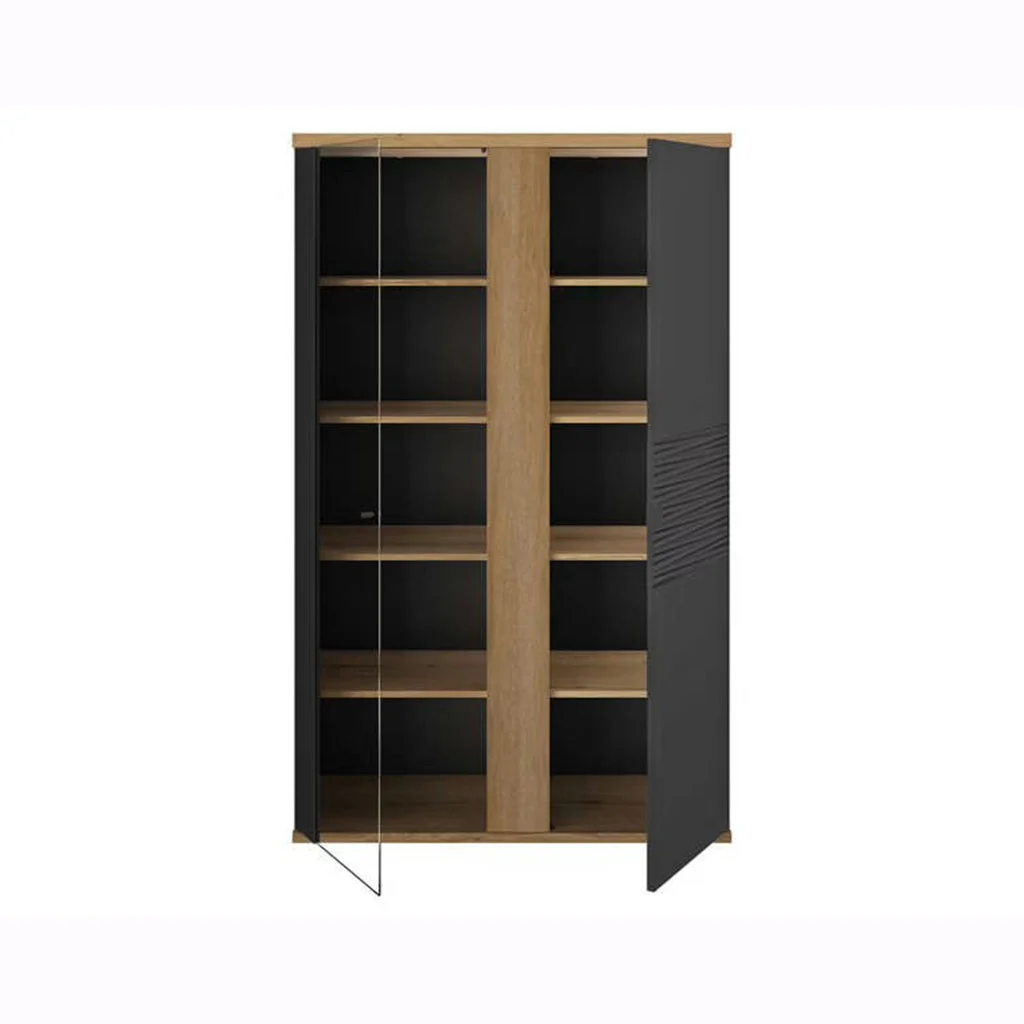 Description: Showcase natural style, Itswhite and Helvezia oak coloris combined with a refined structure, has a full door with a tempered glass door.