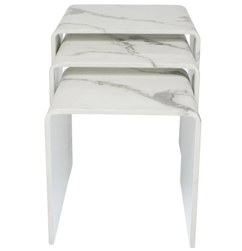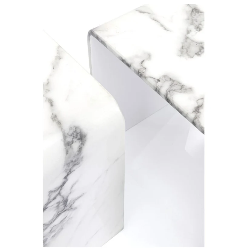 Description: Furniture with a marble look has a luxurious but discreet aura. In this set of side tables the look has been achieved by the marble design in glass, which doesnt worry about stains and looks as chic and glamorous as real marble.