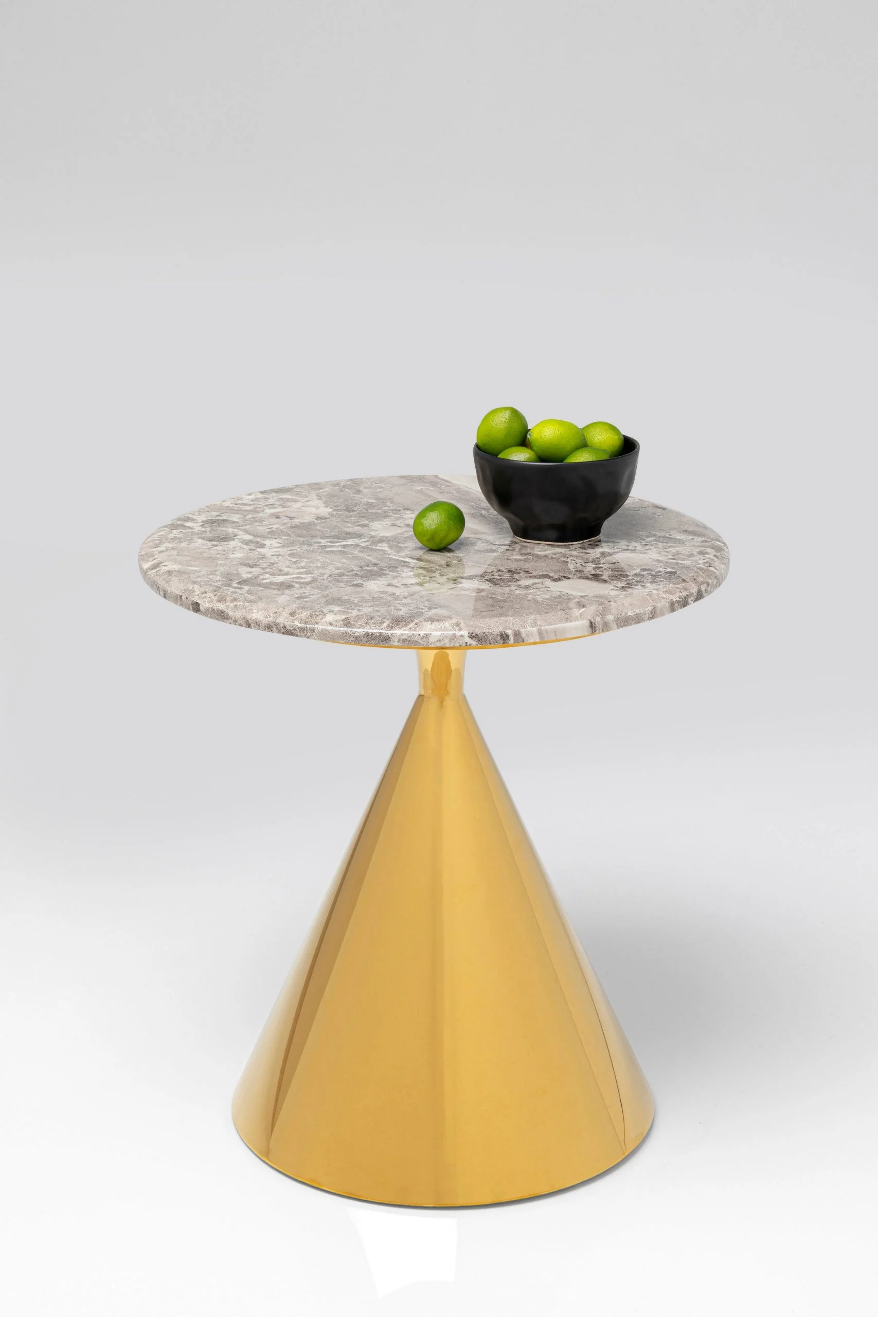 Description: The round Rita Gold side table is a work of art in itself. With its grey tabletop and golden metal base, it will be an absolute eye-catcher in any modern interior. The beautiful cultured marble of the top, a composite of pulverized marble and resin, blends harmoniously into any interior. Artificial marble is easier to clean and less sensitive than natural marble. The high-quality workmanship and the use of durable materials make the Rita Gold side table an indispensable design component for any living area. Whether as a place for books, decorations or as a serving table for drinks and snacks – the Rita Gold side table is an elegant and practical highlight in any room.