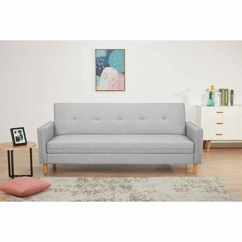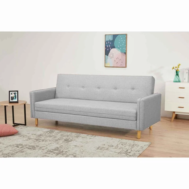 Description:3 positions convertible sofa Additional leg support at the back This basic sofa bed is upholstered in fabric and has a clic-clac opening mechanism for easy conversion into bed.