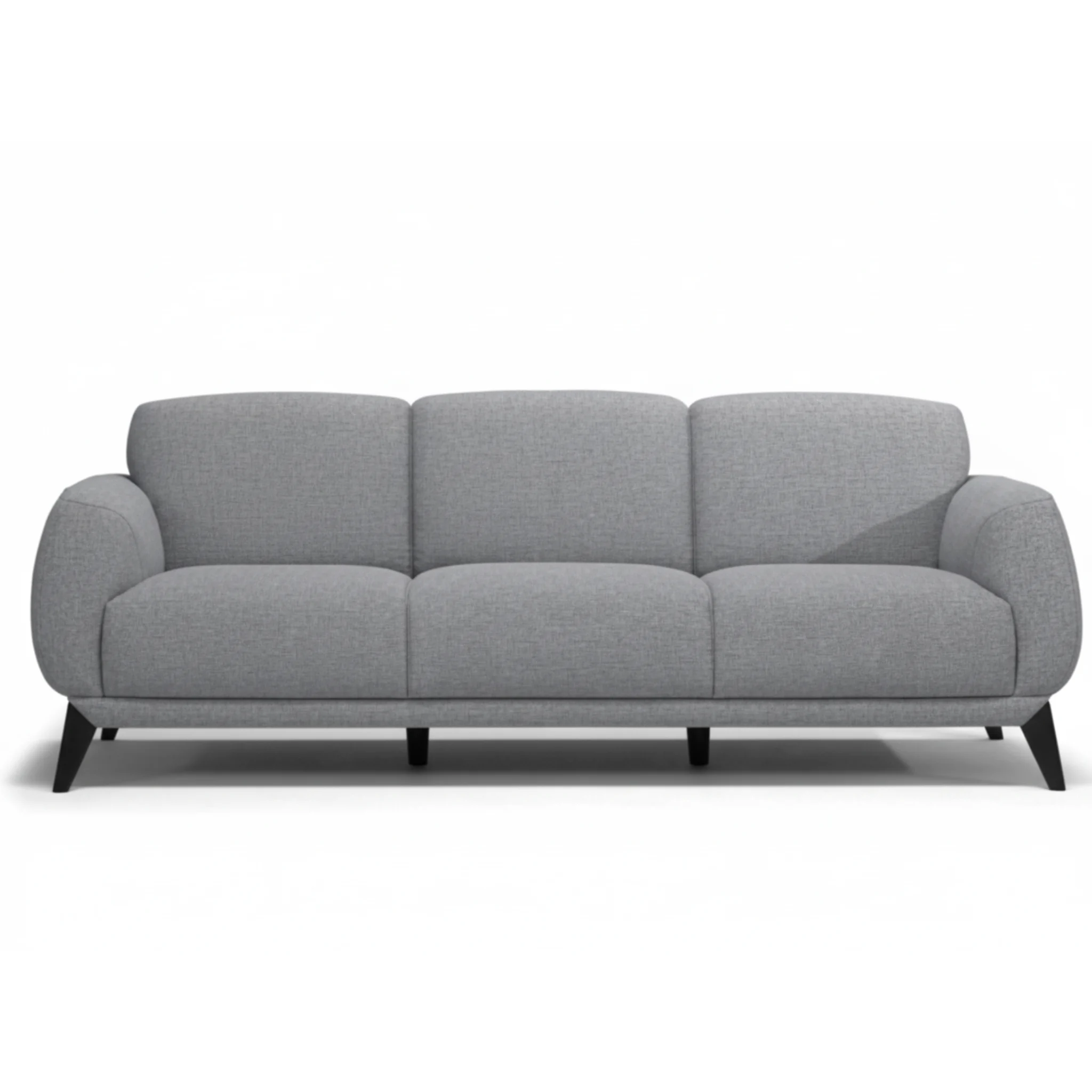 Description: Inviting gray sofa offering a comfortable, modern design with its smooth fabric finish
