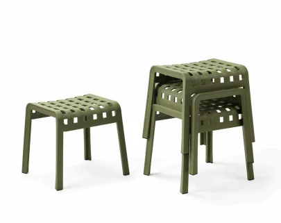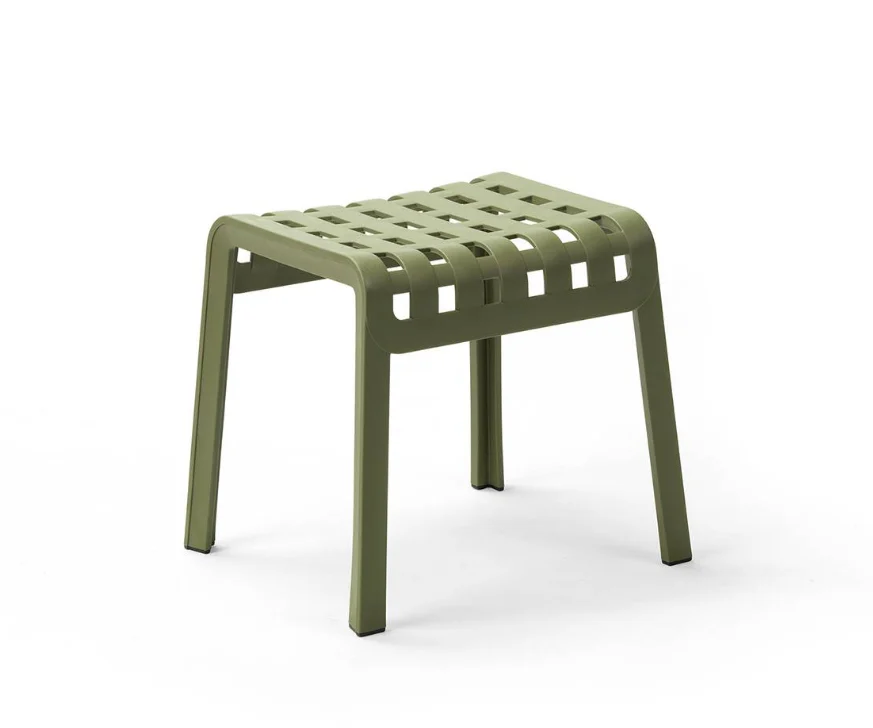 Description: Monobloc mini stool/footrest. Uniformly colored fiberglass polypropylene resins with UV additives. Matt finish. With non-slip feet.