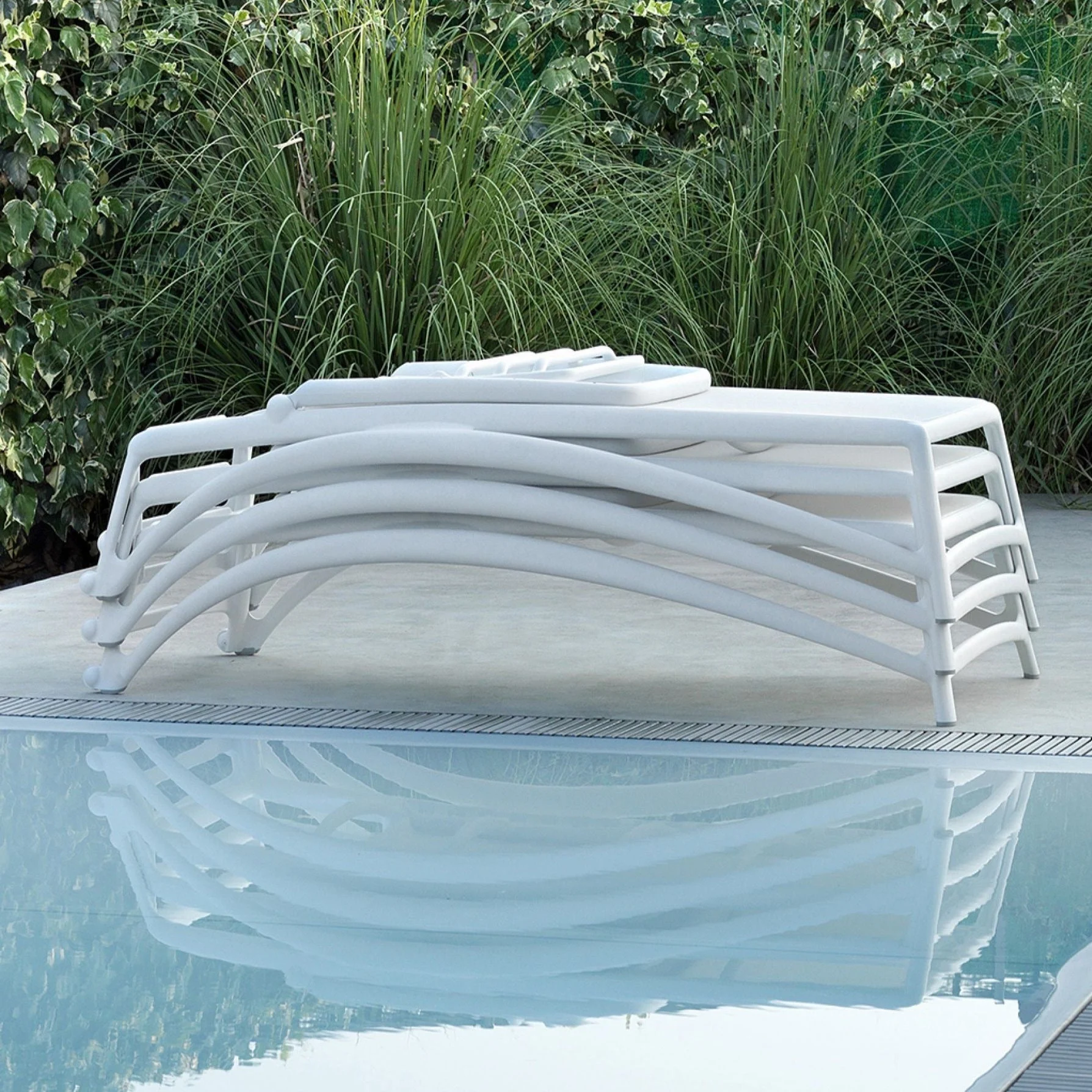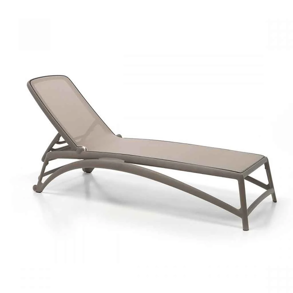 Description:Atlantico is a sun lounger with fiberglass frame and breathable, interchangeable fabric. Backrest adjustable to four positions. Stackable.