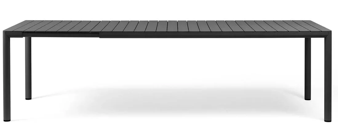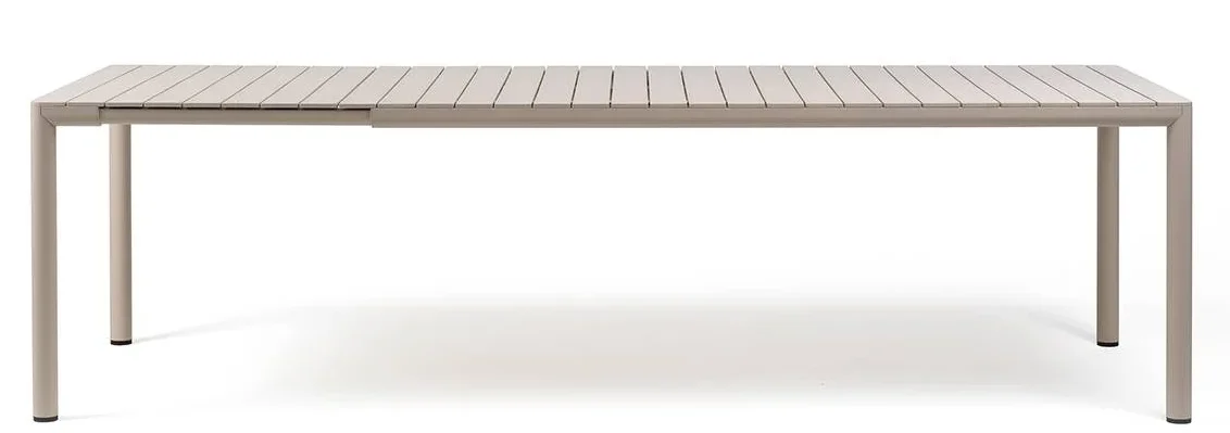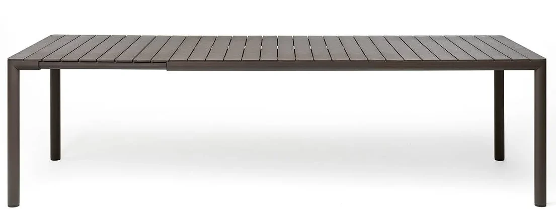Description: The design of the eco-friendly Tevere outdoor extensible table features smooth lines, centered on the absence of sharp edges and the rounded shapes of the legs.
