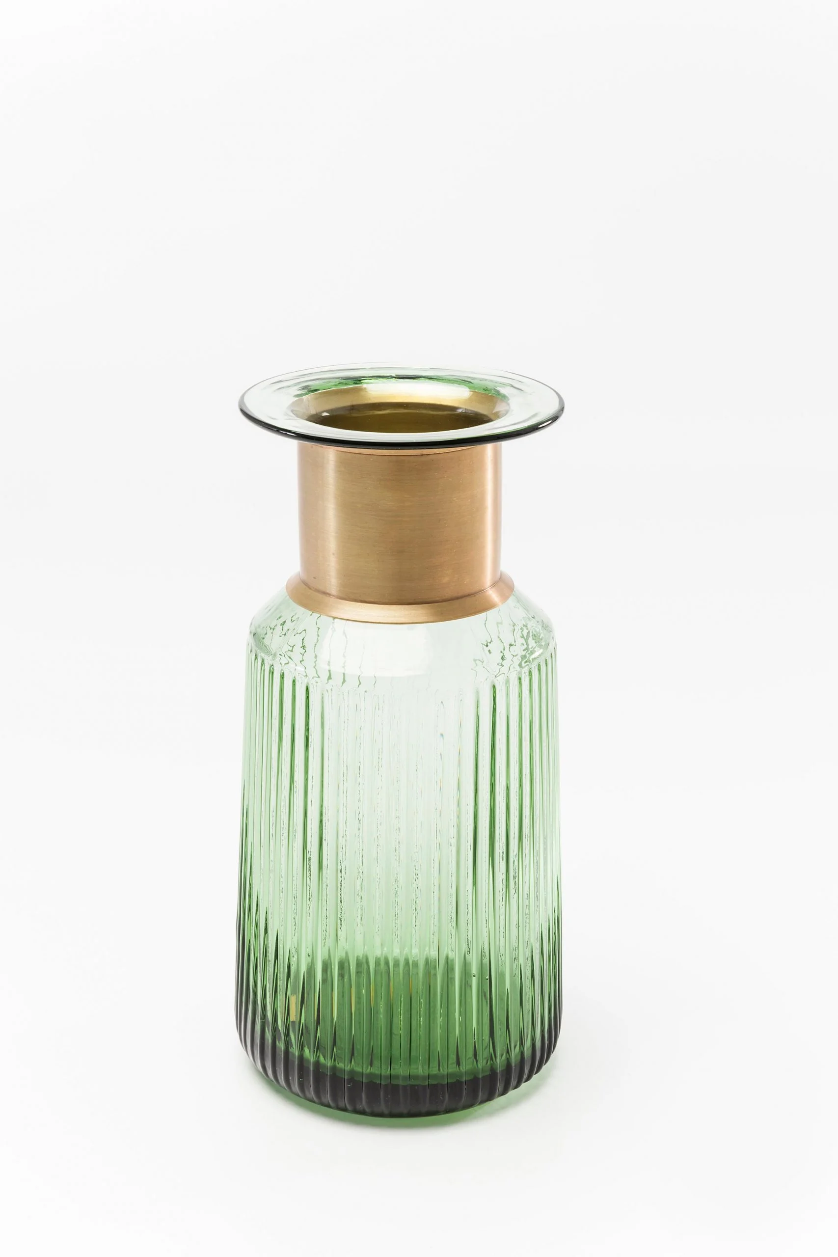 Description: Vase in green: a vase series with that certain something The Barfly series plays with gentle pastel colours, versatile shapes and solid glass with different designs. The coloured glass and the unusual shapes of the vases are reminiscent of artistic glass from Murano, while the neck of the vase is decorated by a gleaming ring of brass. Ideal for romantic decorations, a great match for the retro style, and forms a spectacular contrast on a modern sideboard. Choose your favorite color and shape from our highly diverse range!