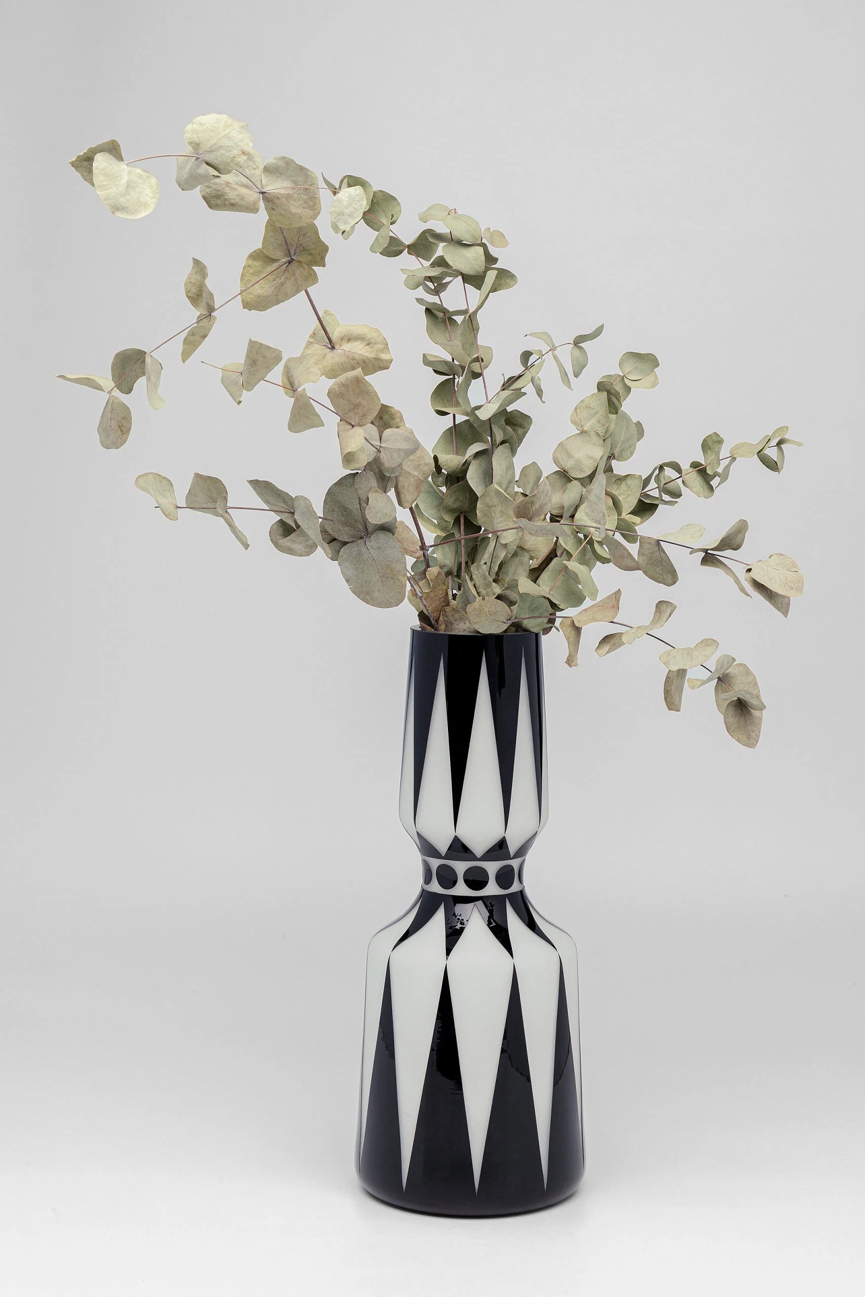 -Vase made of glass coloured in a design of black and white dots