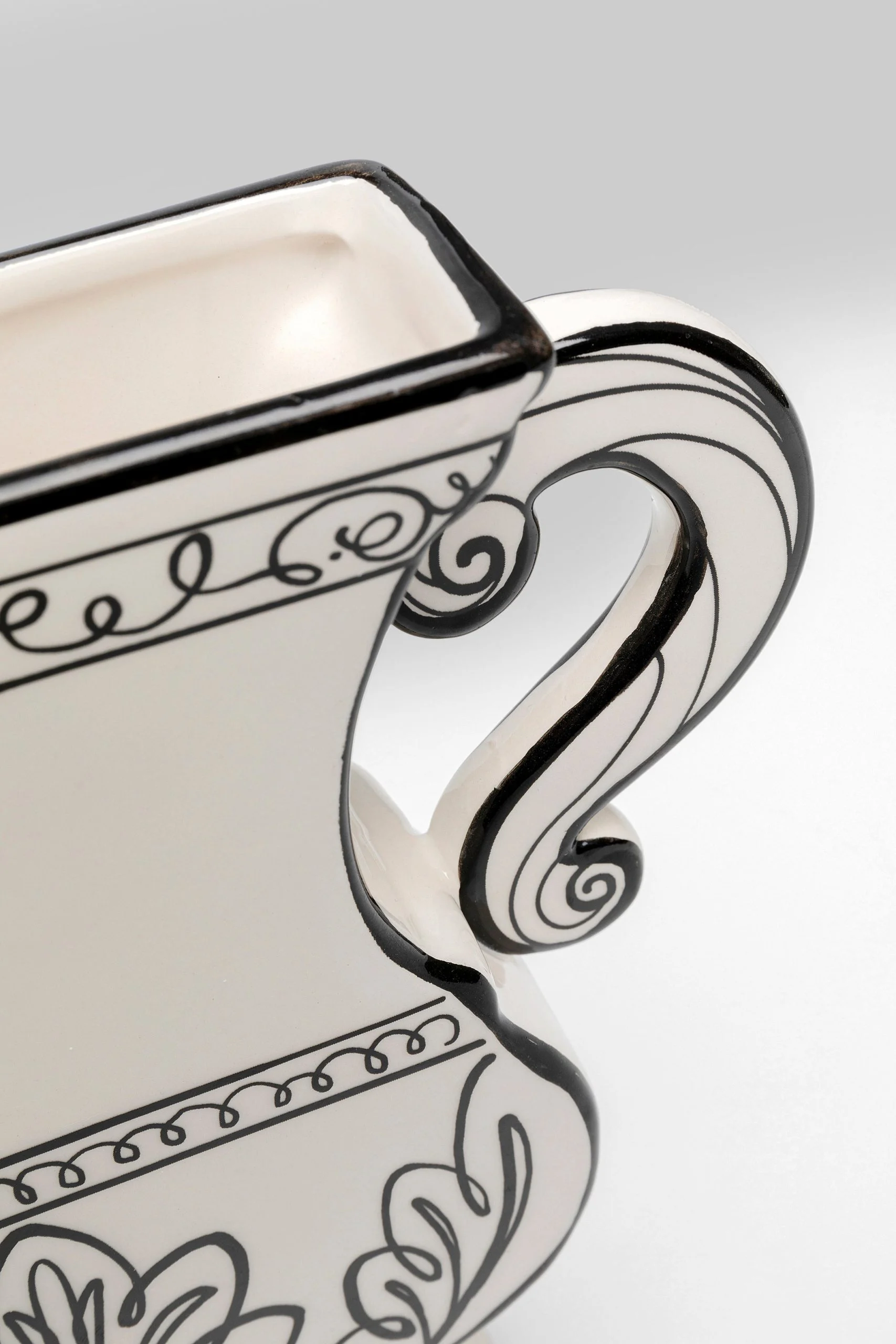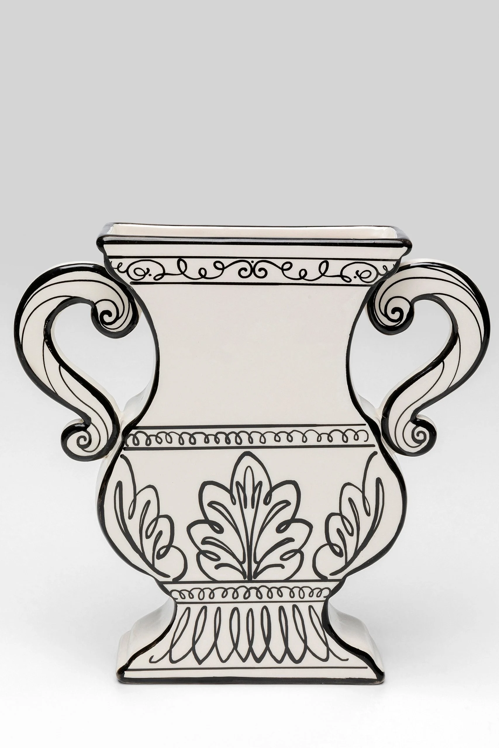 Description: The white Favola vase is not only an excellent addition to your interior, but also a functional object. It is ideal for fresh flowers, sprigs or other decorative arrangements and can be placed on any table, shelf or windowsill. With its unique design and hand-painted black lines, it will attract all eyes and add a special touch to your home.