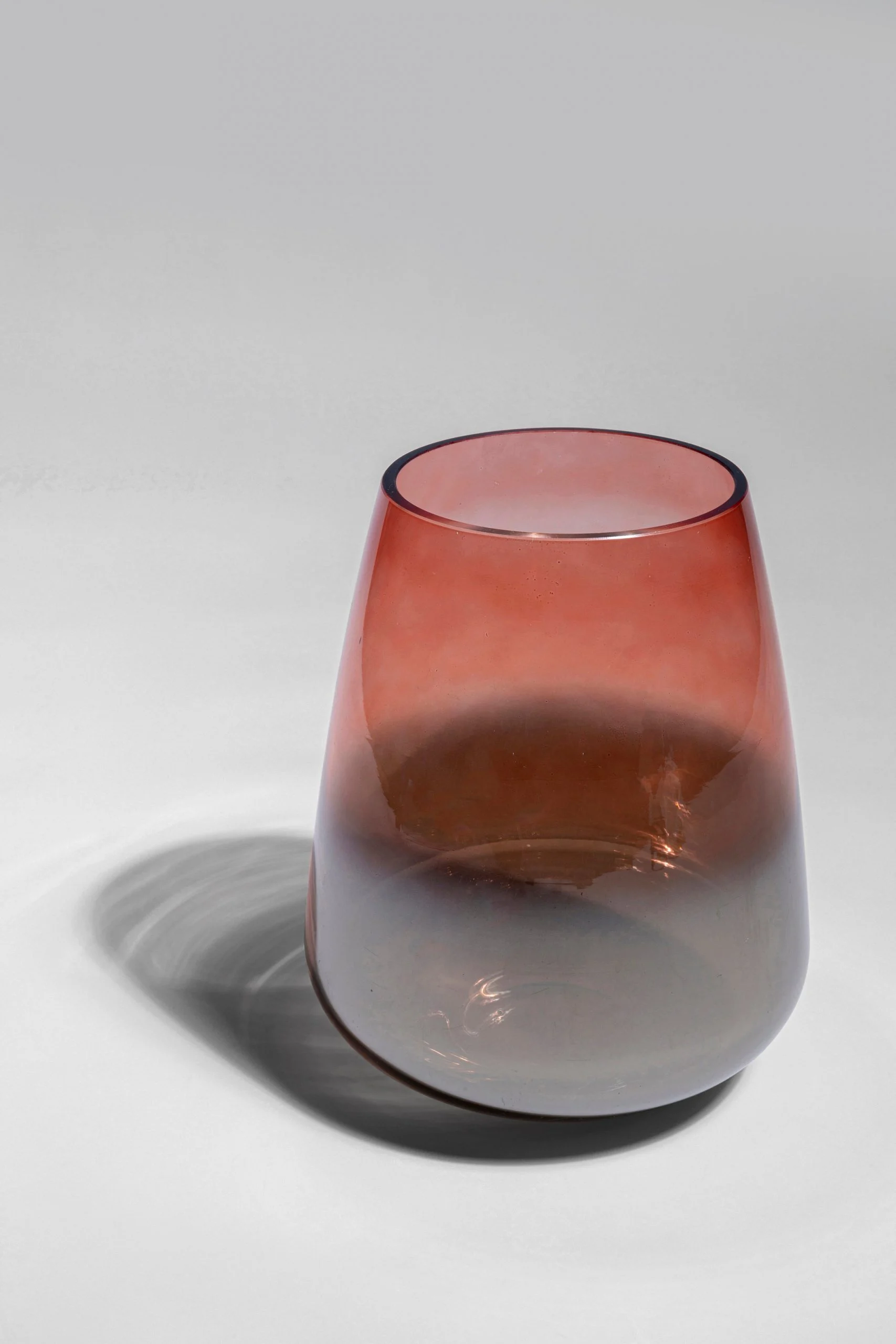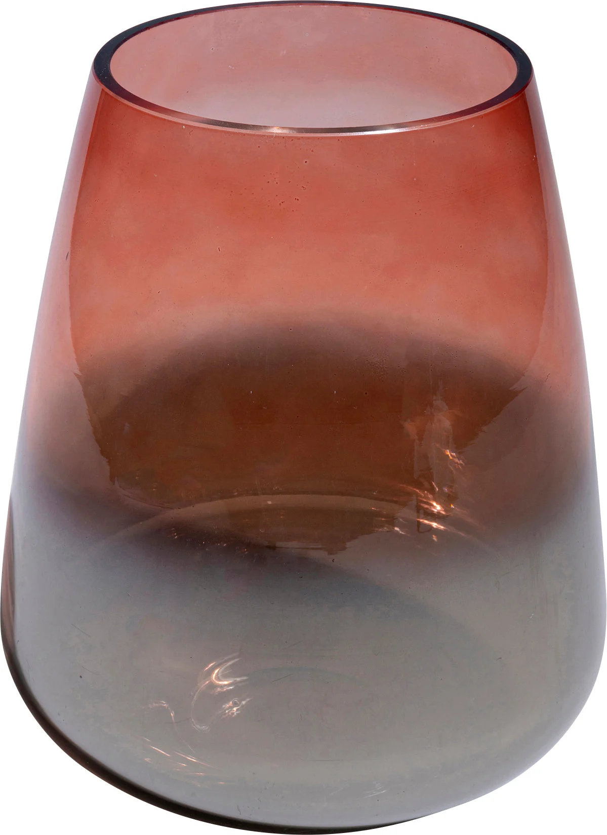 Description:This Vase is a red, lacquered glass vase that measures 23cm high, 19cm wide, and 19cm deep. It weighs 1.13 kg and is part of the Glow range, which features vases with gradations of color. Each vase is unique due to its hand-crafted nature.Material:Glass foiled-lacquered, Hand-crafted, Each peace unique