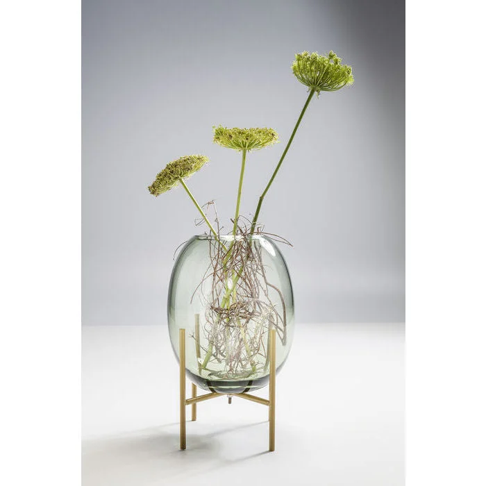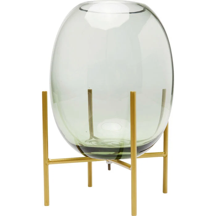 Description:This handmade glass vase in delicate green stands on brass-colored steel feet.