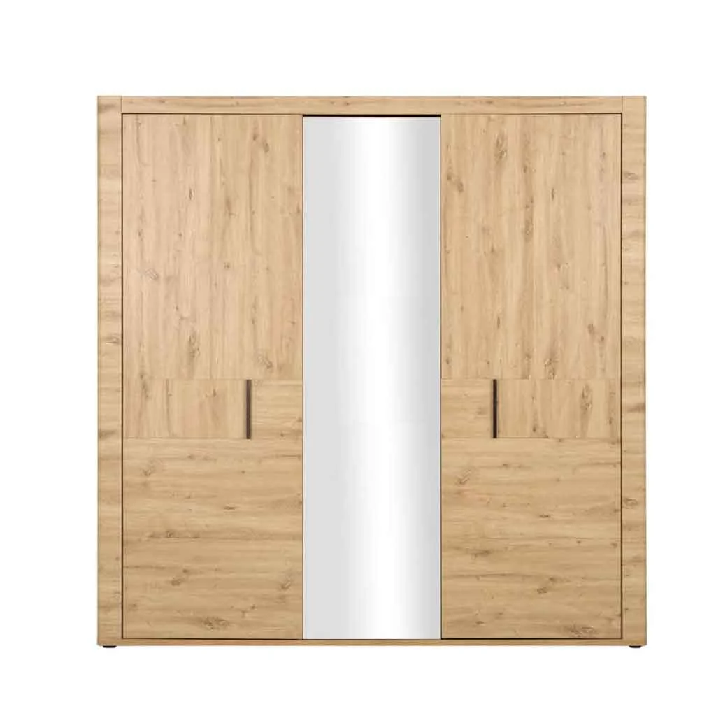 Wardrobe with 3 hinged doors including 1 door with mirror, positioned in the center or to the right.