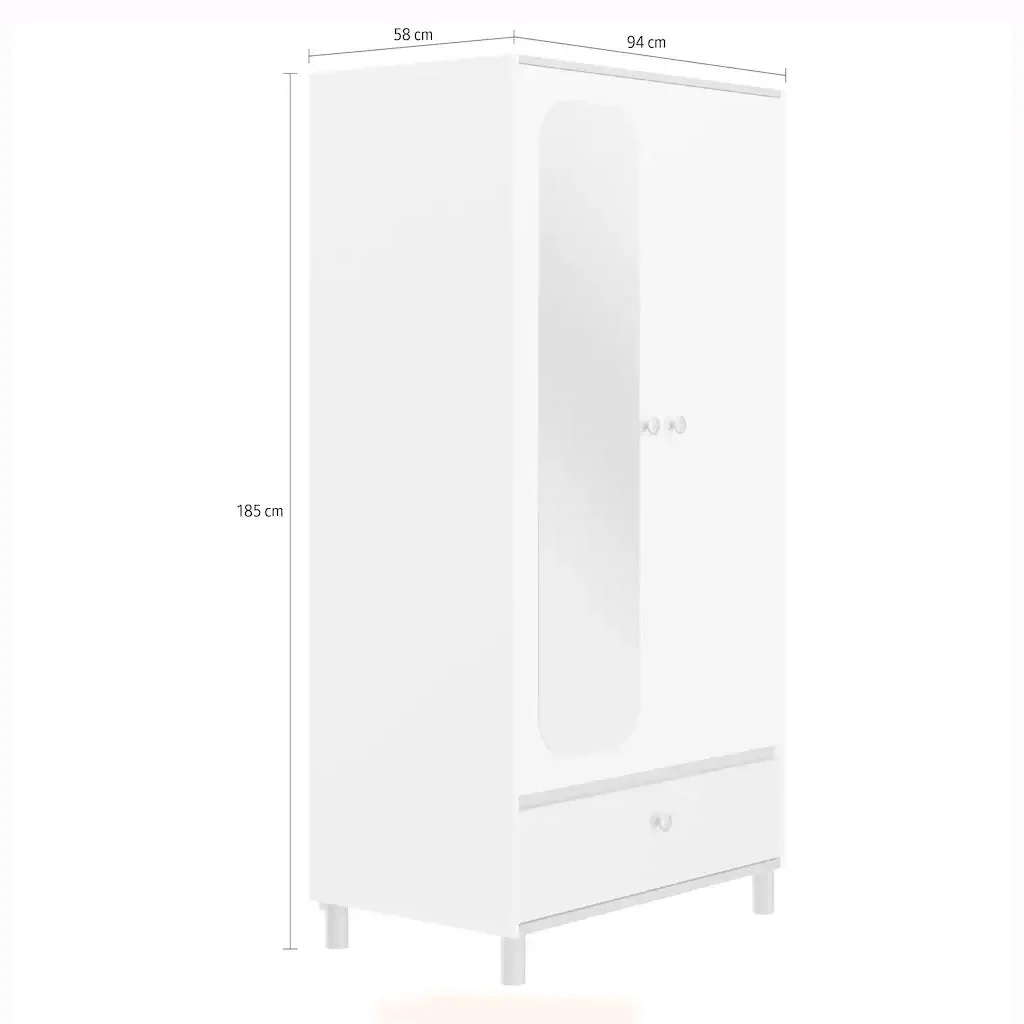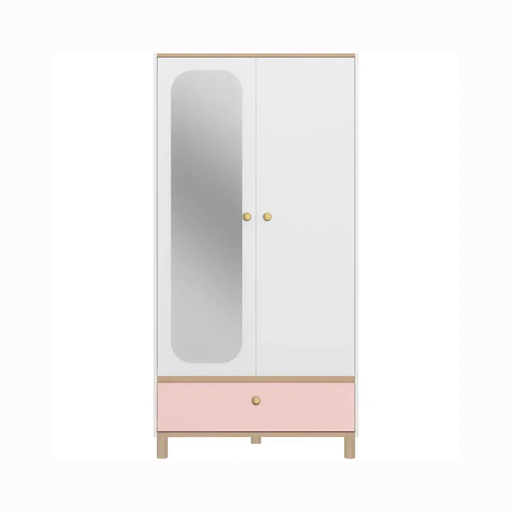 Description: Wardrobe for more space in the children’s room, color pink/ white. Large mirror at the front and drawer in the lower part.